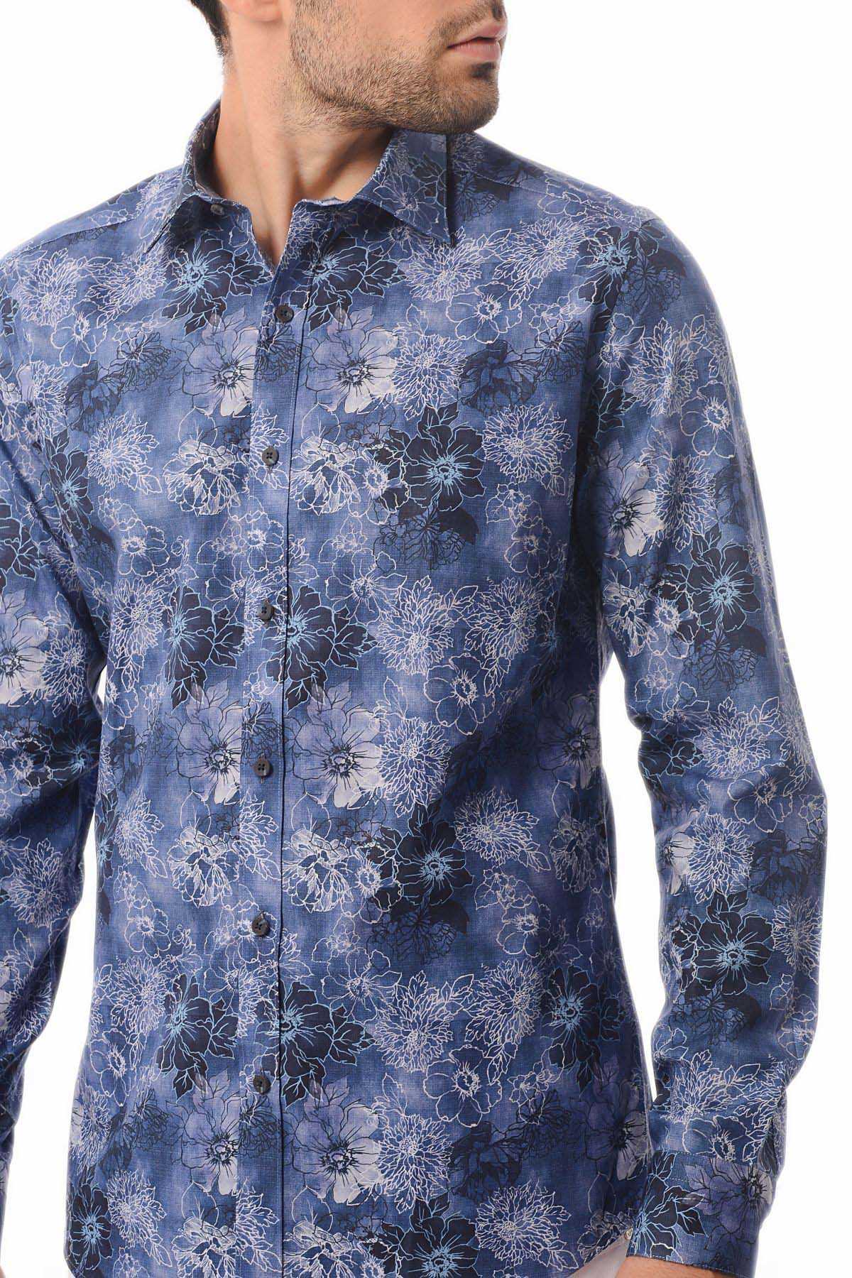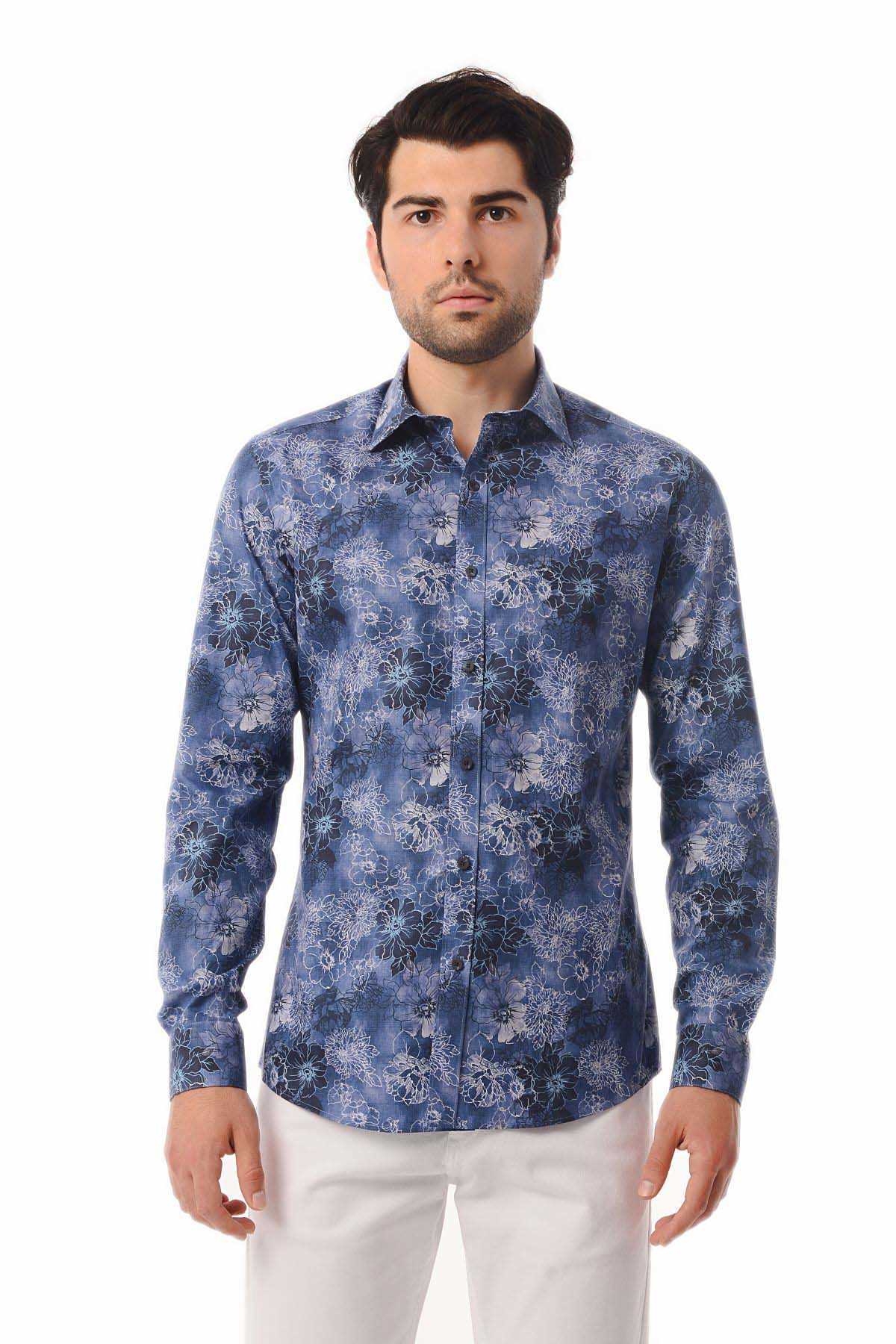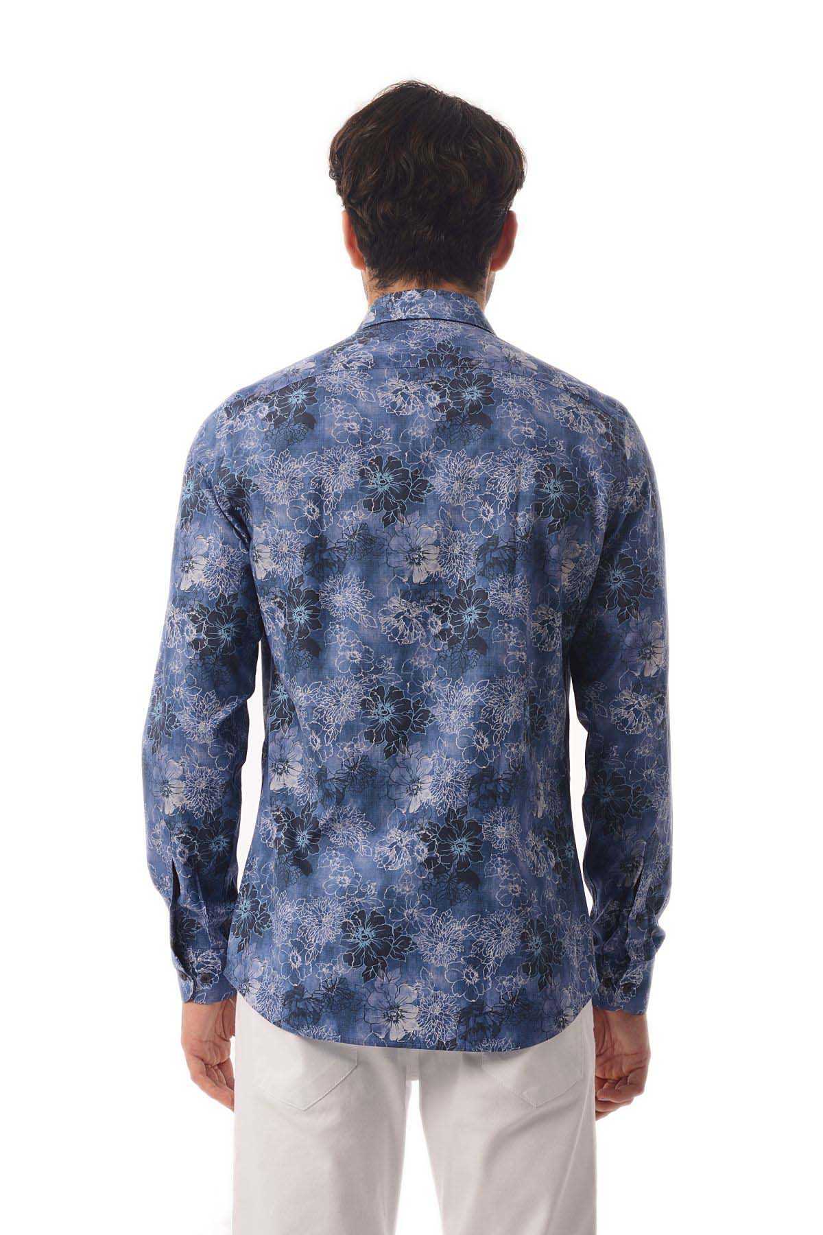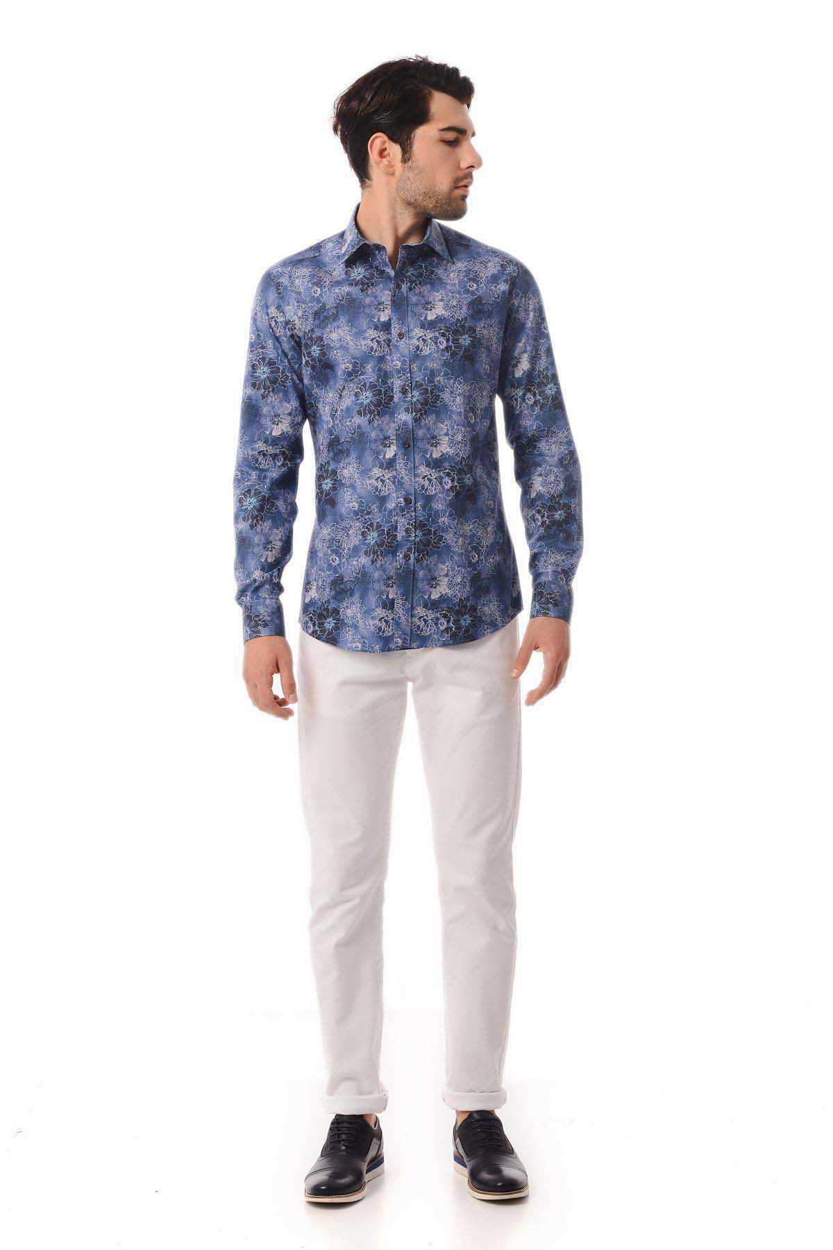 Lacivert Baskılı Slim Fit Gömlek