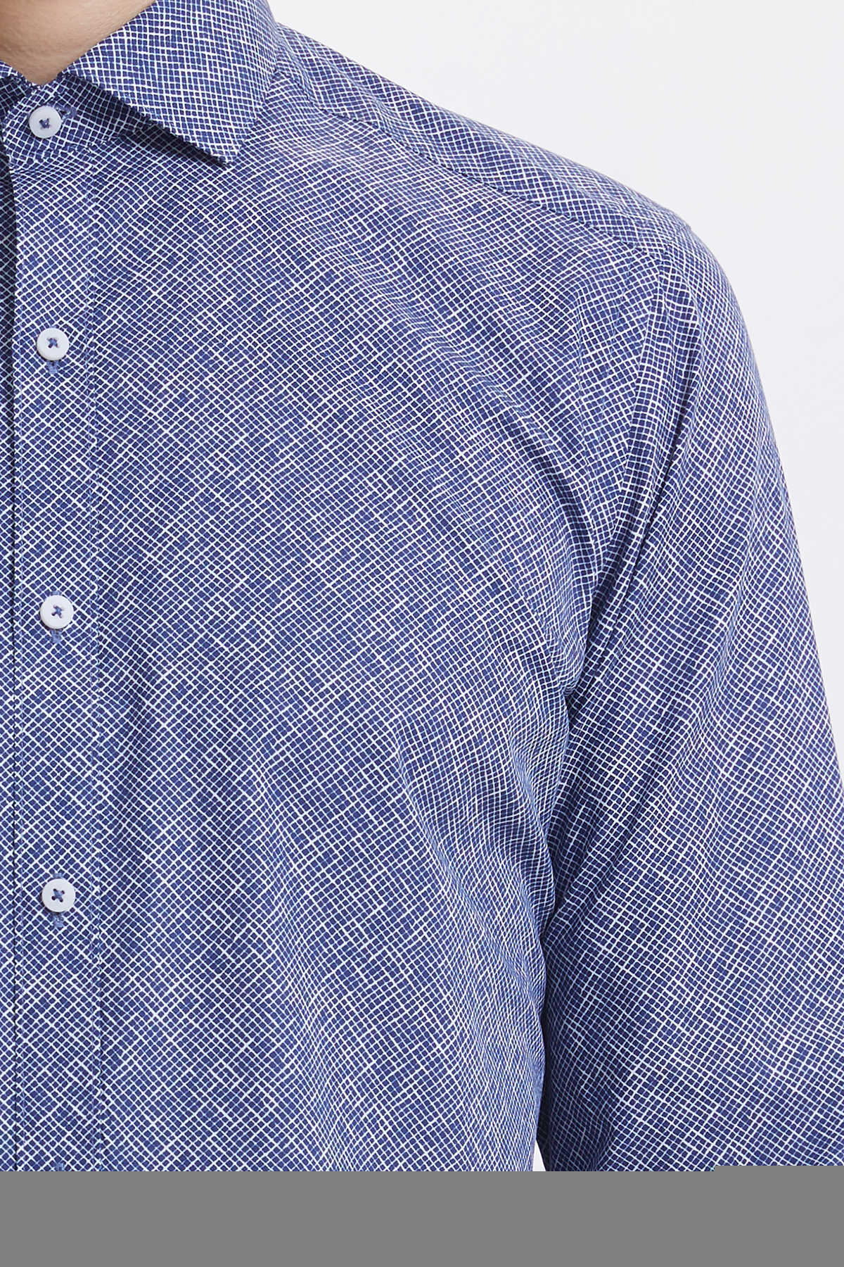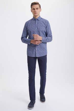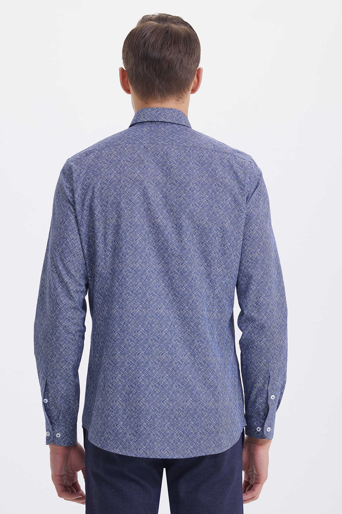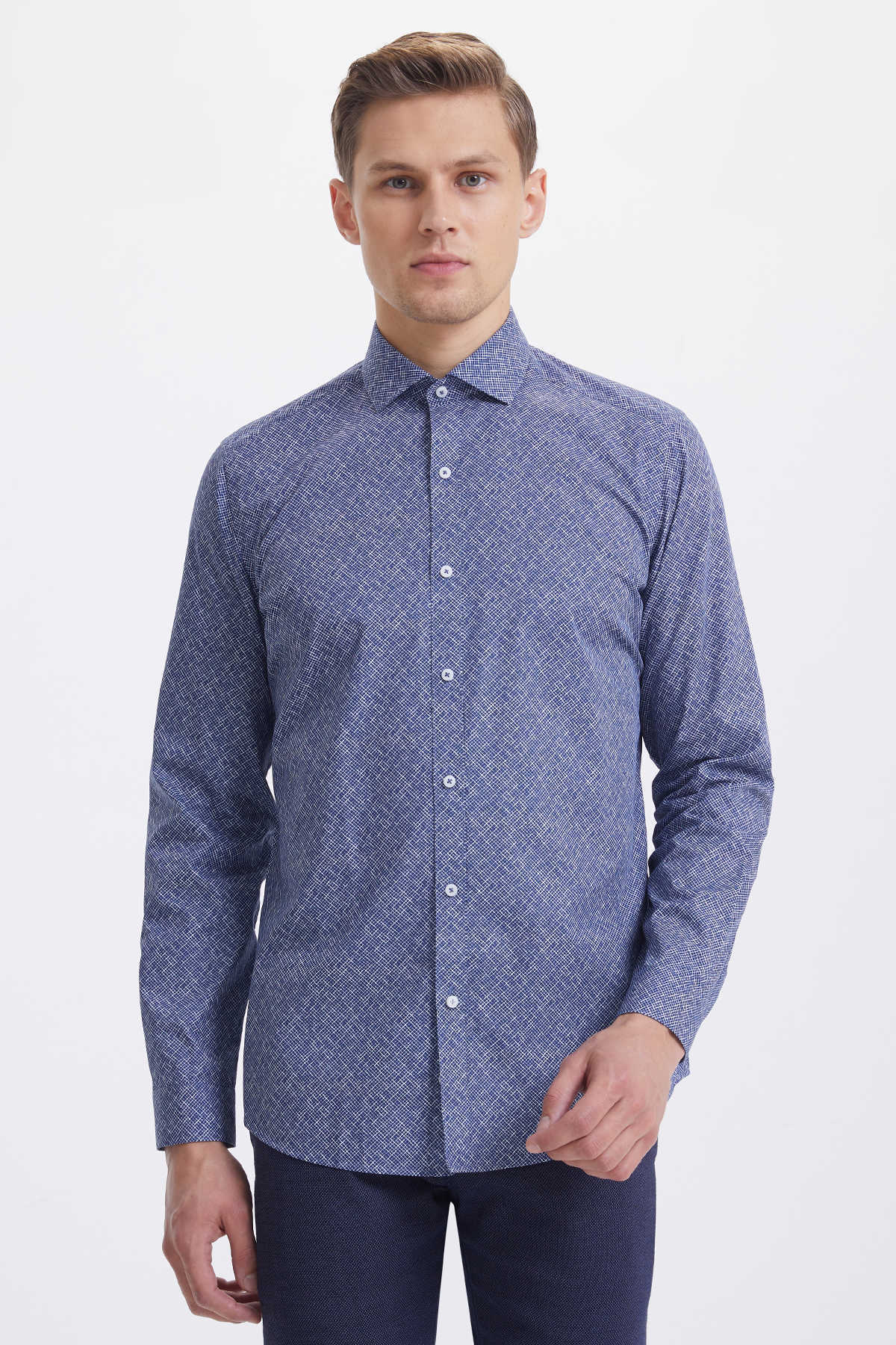 Lacivert B3 Baskılı Slim Fit Gömlek