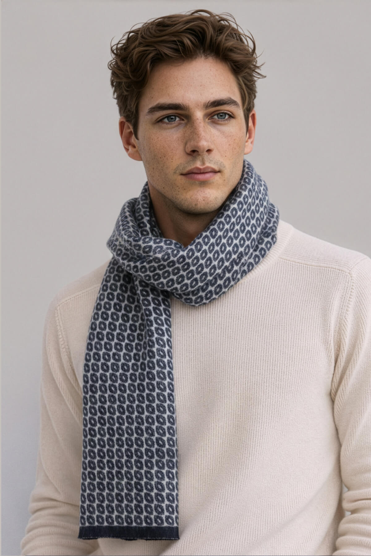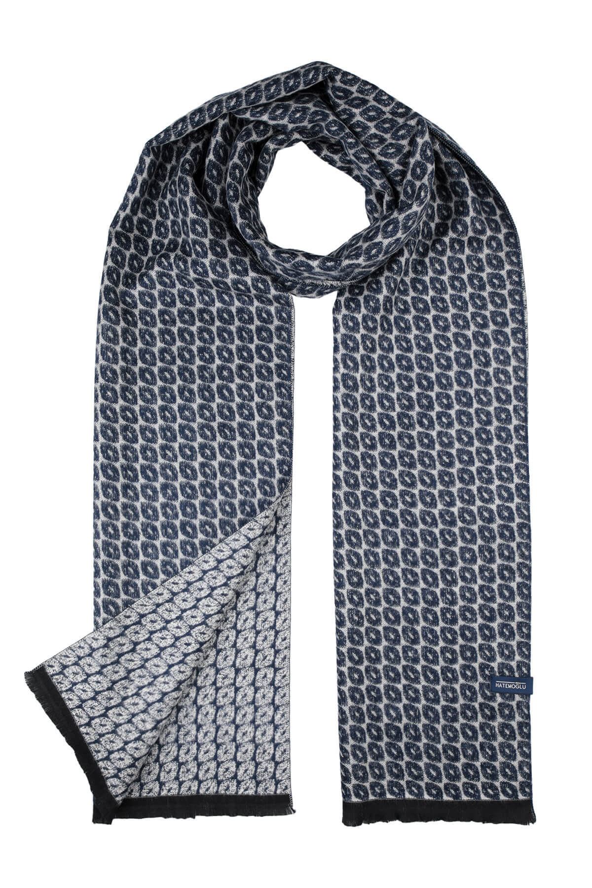 Lacivert-Bej Desenli Atkı