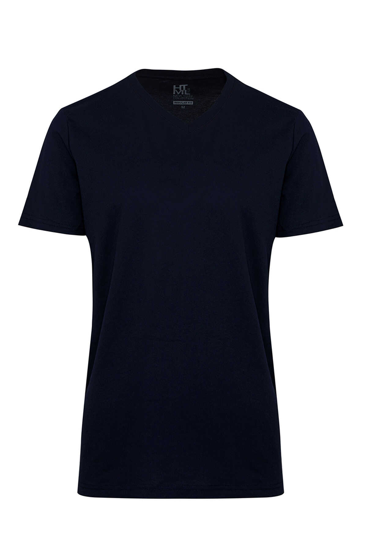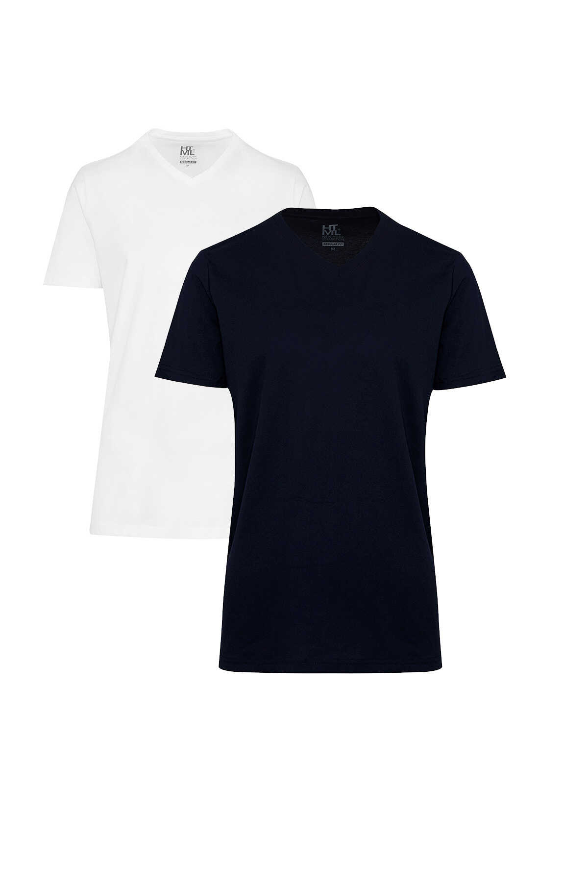 Lacivert ve Beyaz Regular Fit %100 Pamuk V Yaka İkili Paket Basic Tişört