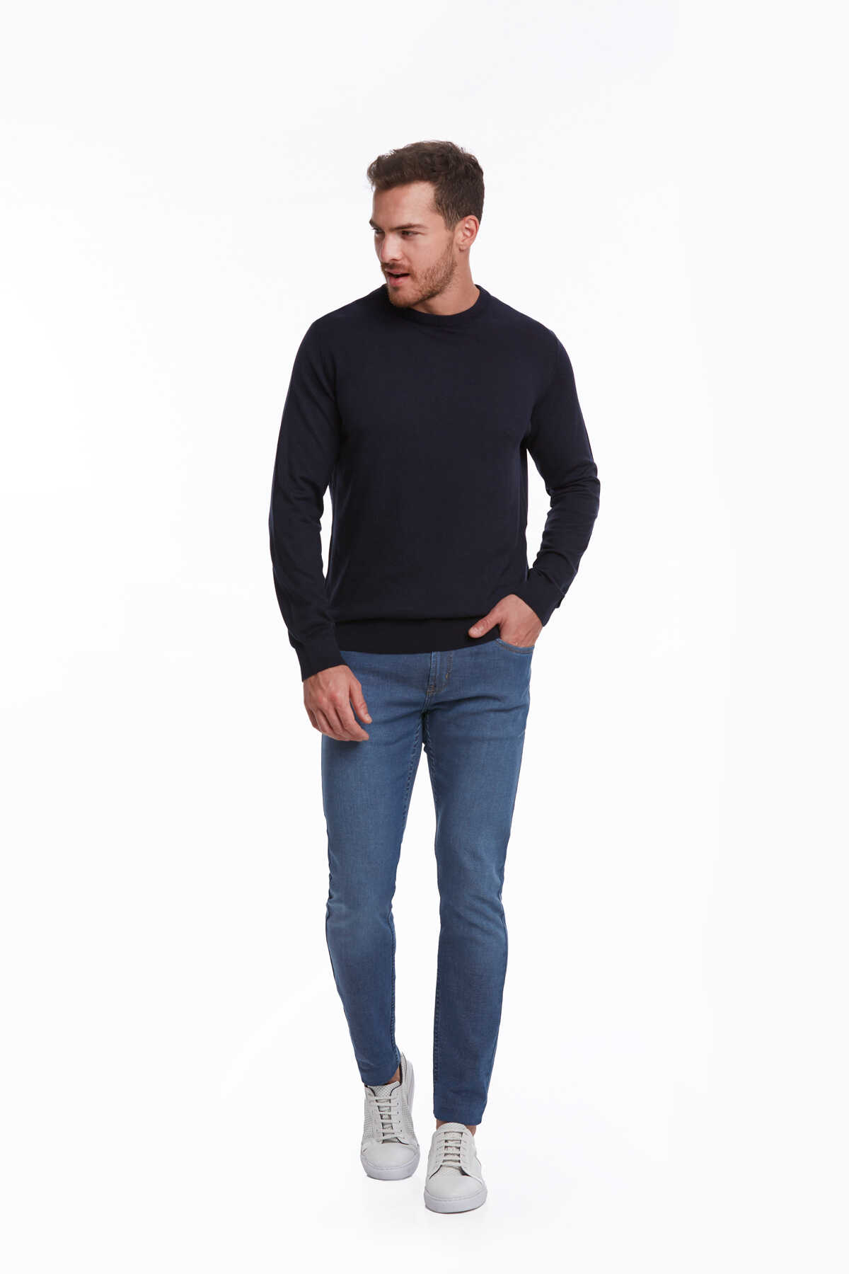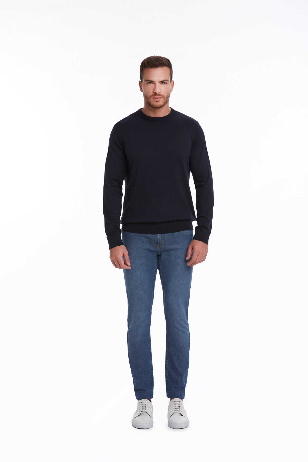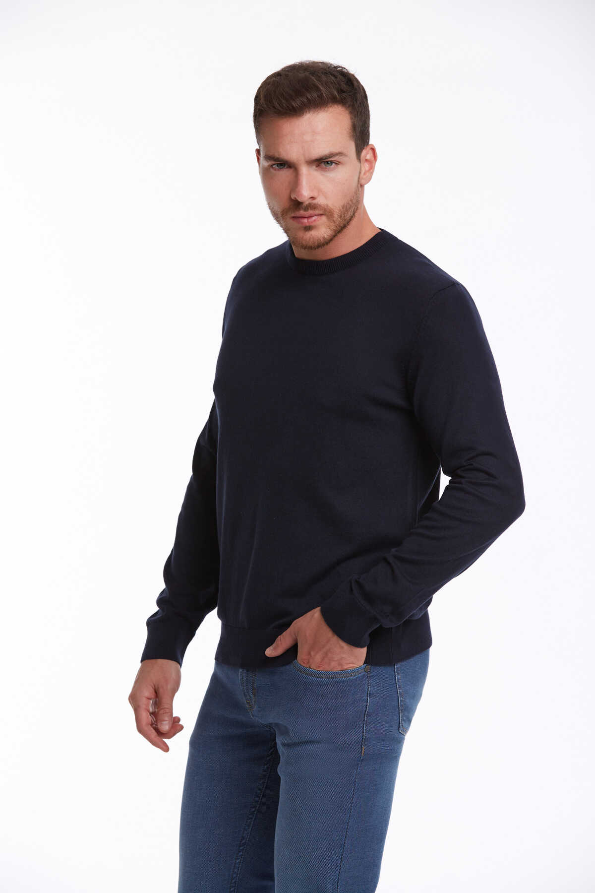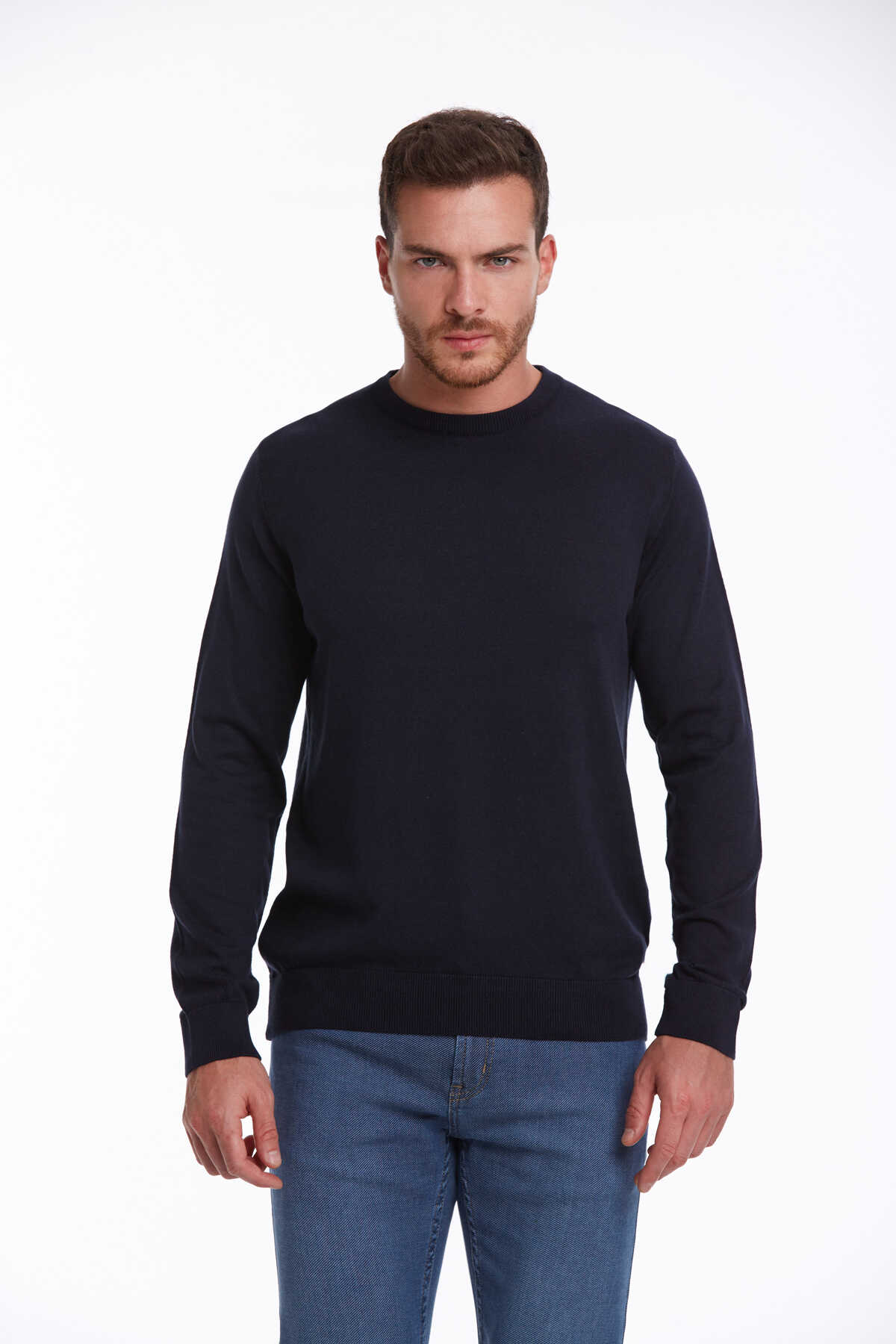 Lacivert Regular Fit Bisiklet Yaka 100% Pamuklu Triko Kazak