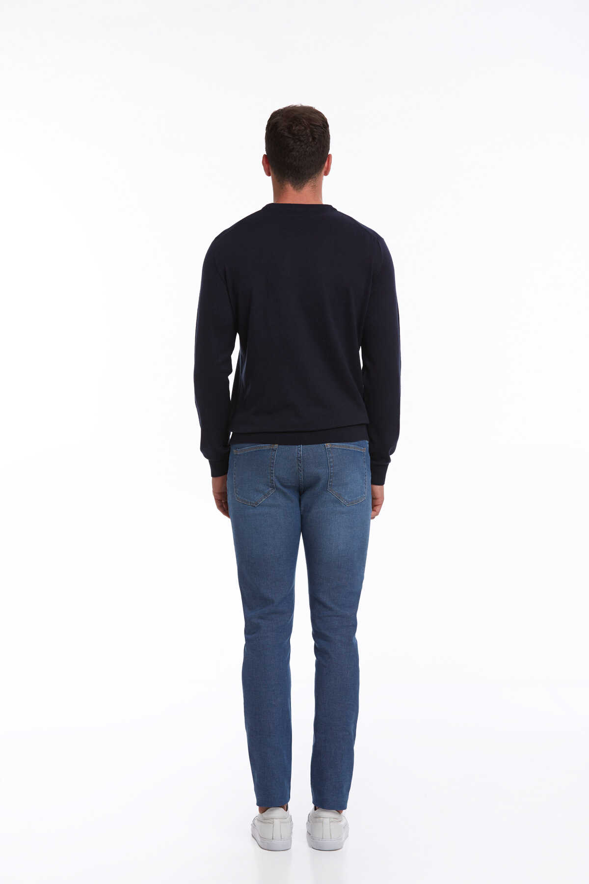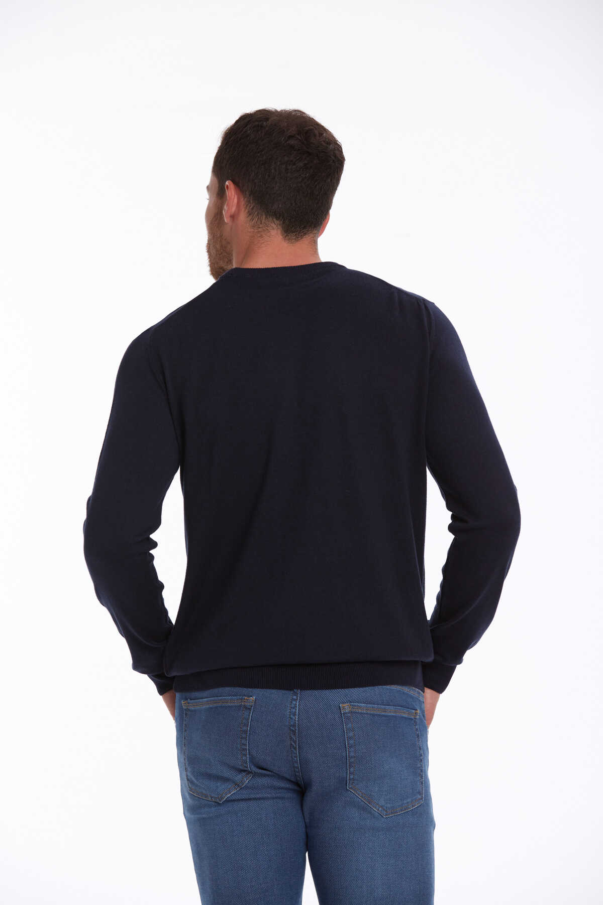 Lacivert Regular Fit Bisiklet Yaka 100% Pamuklu Triko Kazak - 7