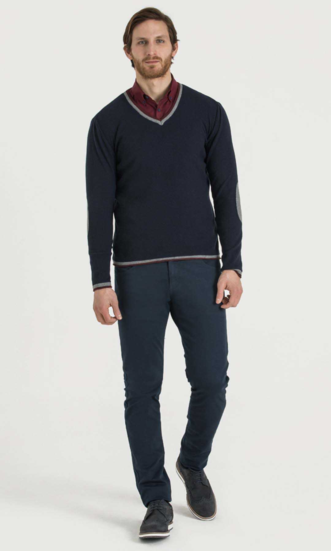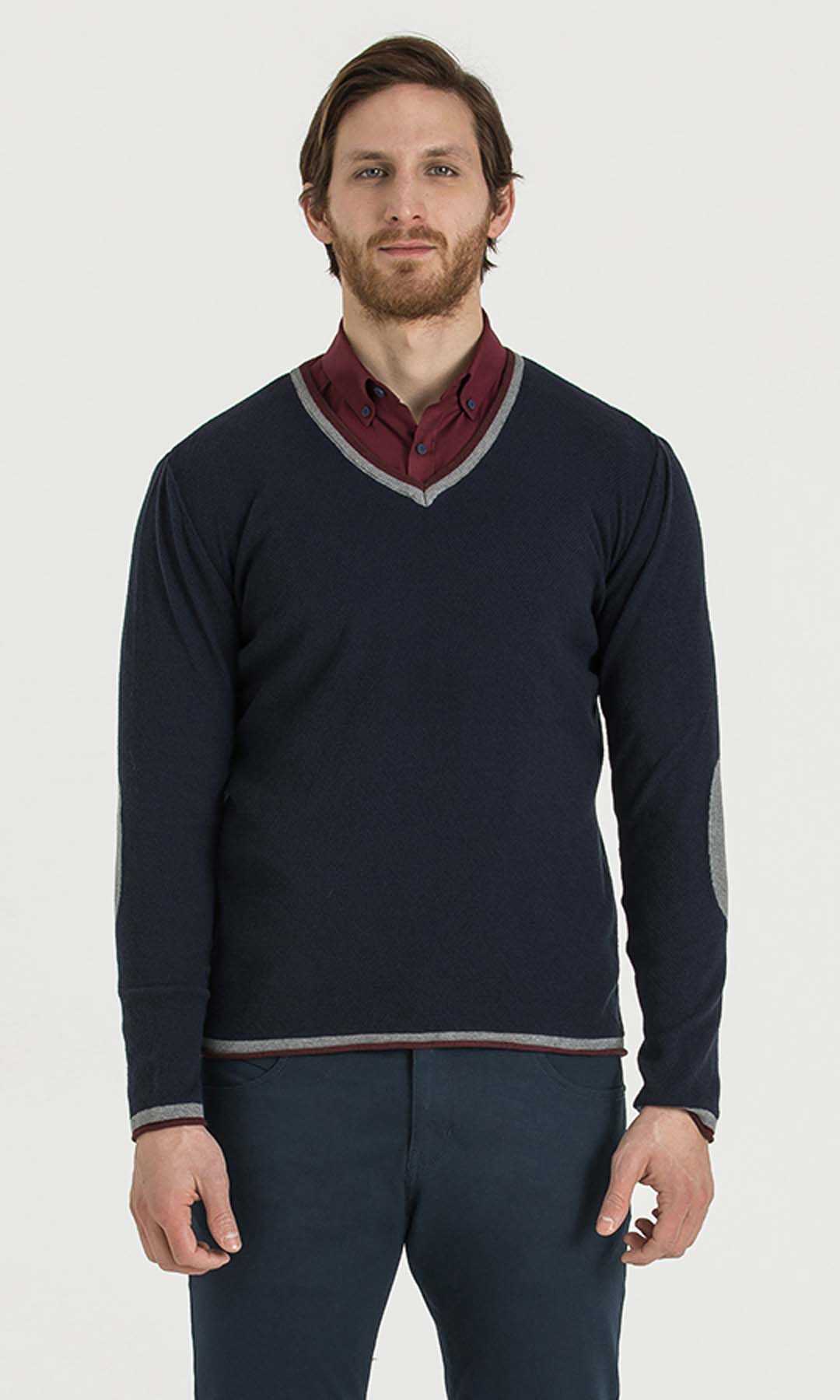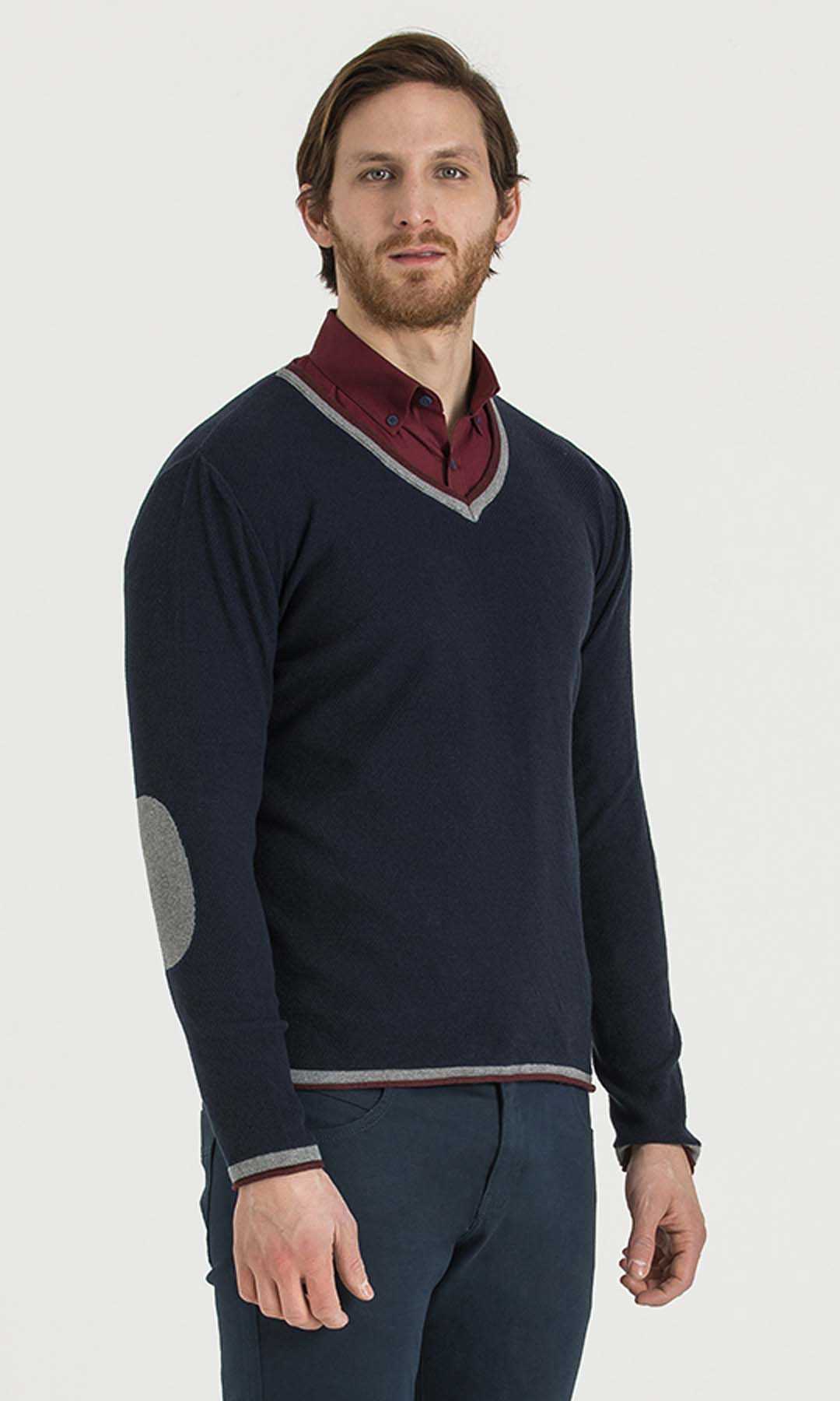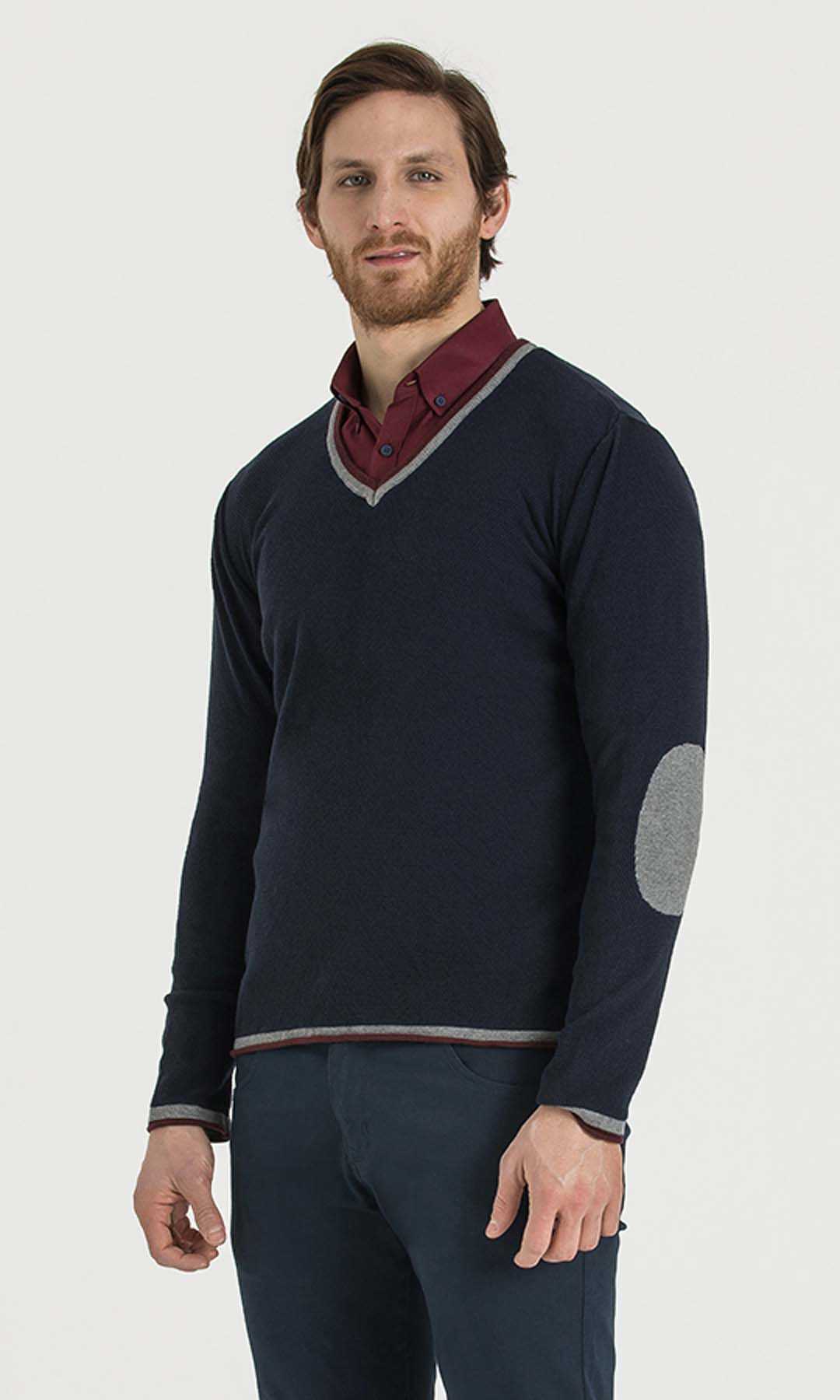 Lacivert - Bordo V Yaka Triko