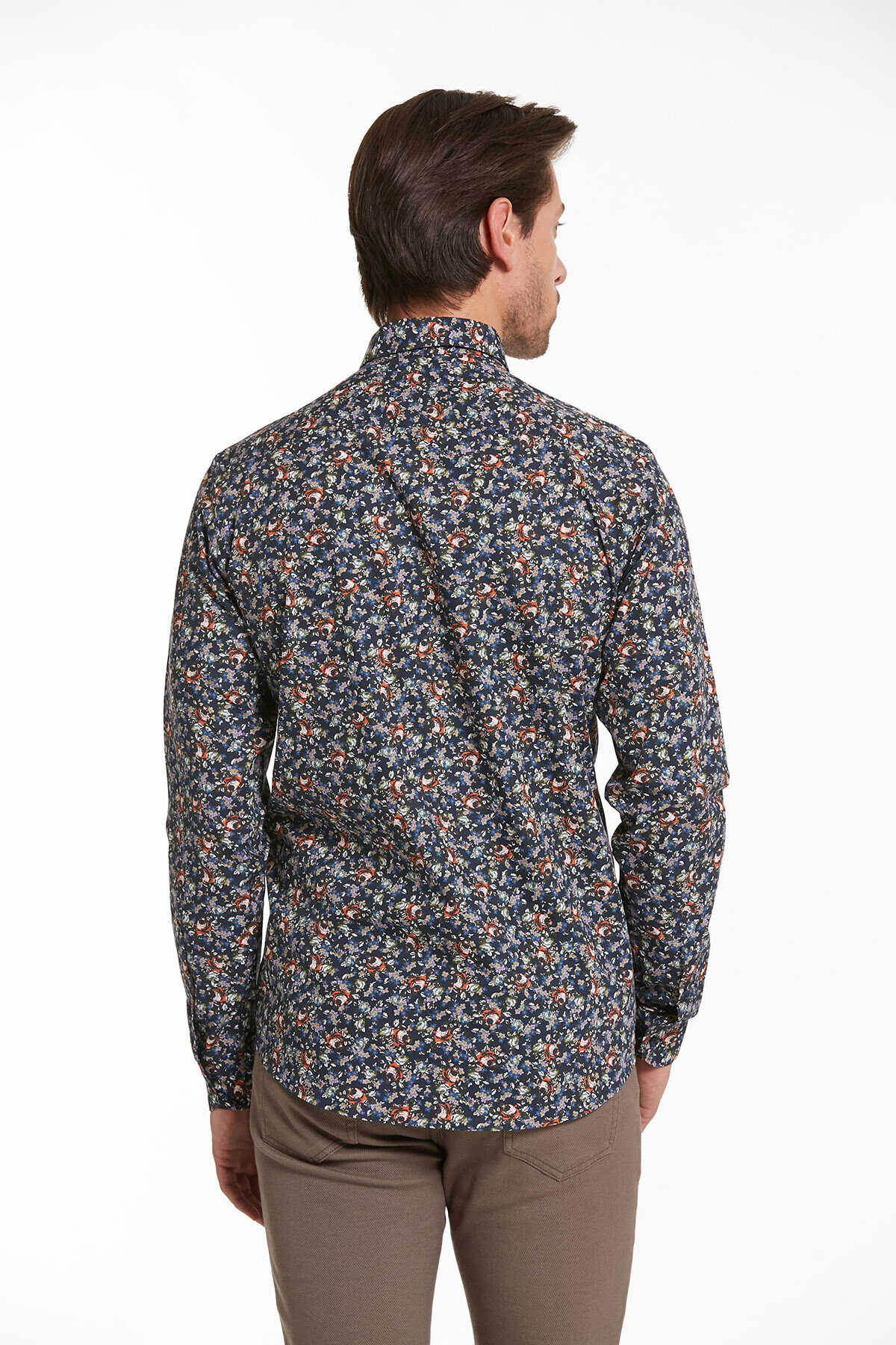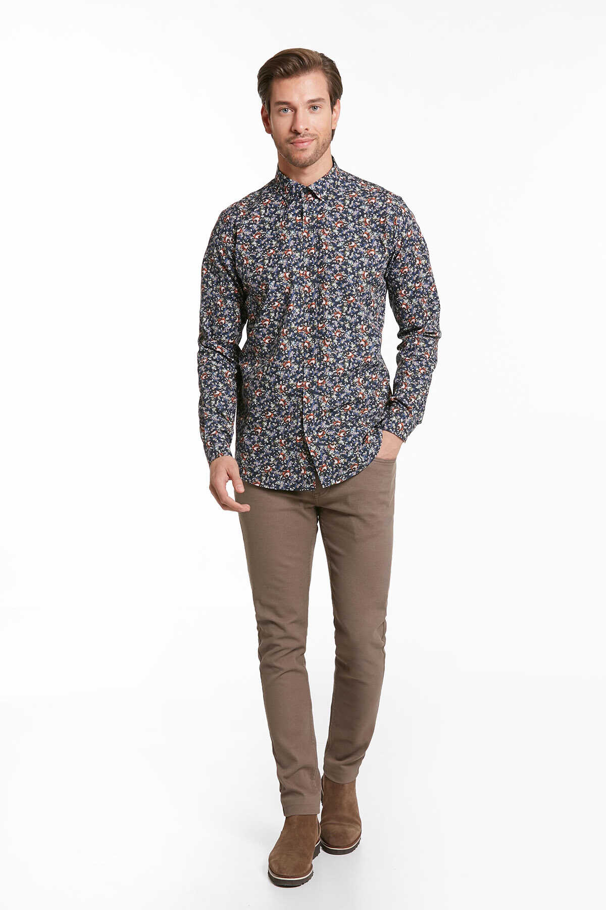 Turuncu Comfort Fit Uzun Kol %100Pamuk Baskılı Casual Gömlek