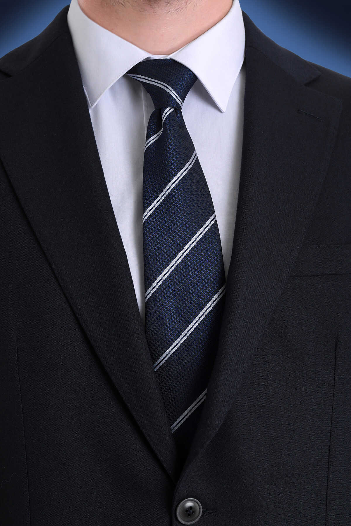 Lacivert Çizgili Kravat