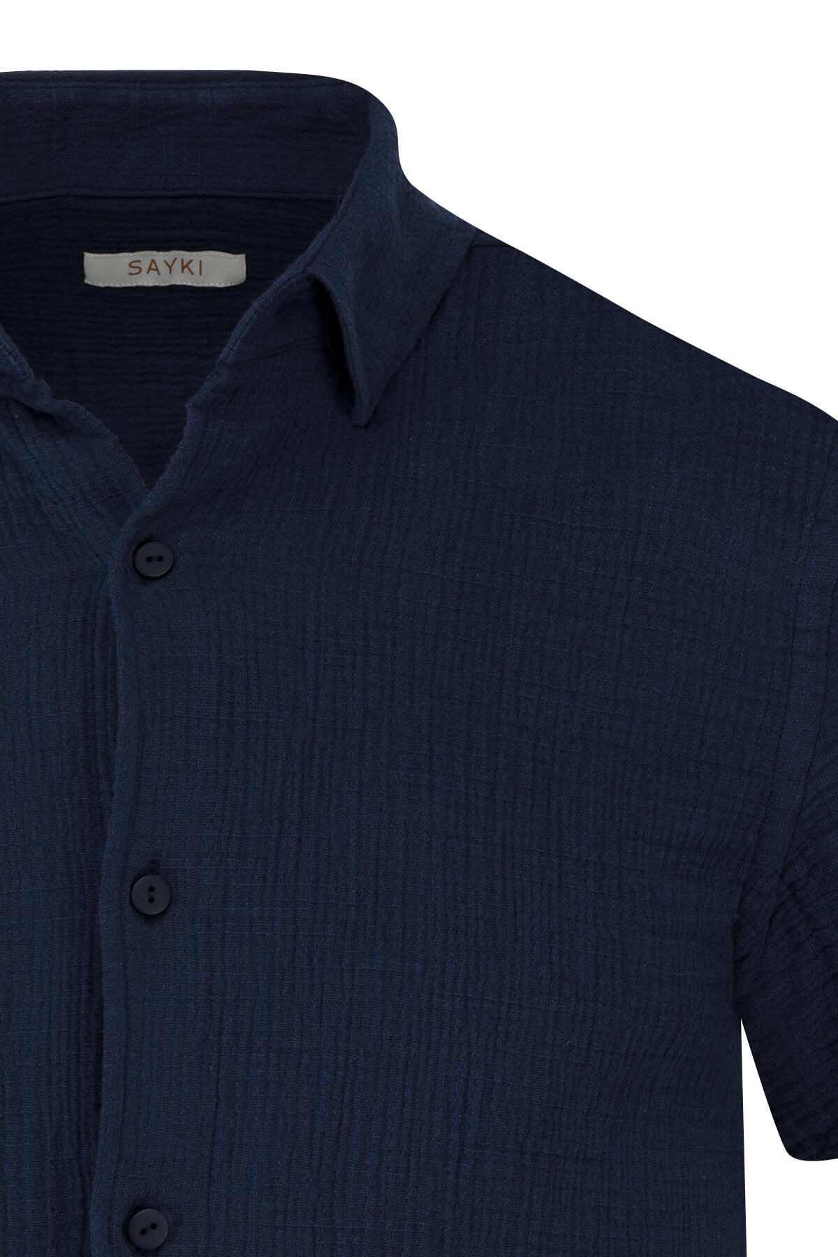Lacivert Düğmeli Yaka Kısa Kollu Gömlek, her erkeğin gardırobunda bulunması gereken zamansız bir parçadır. Zengin lacivert rengi ve %100 pamuklu kumaşı sayesinde gün boyu ferah ve rahat bir kullanım sunar. Sade ve modern tasarımı, bu gömleği hem günlük hem de daha şık kombinler için ideal bir seçenek haline getirir.