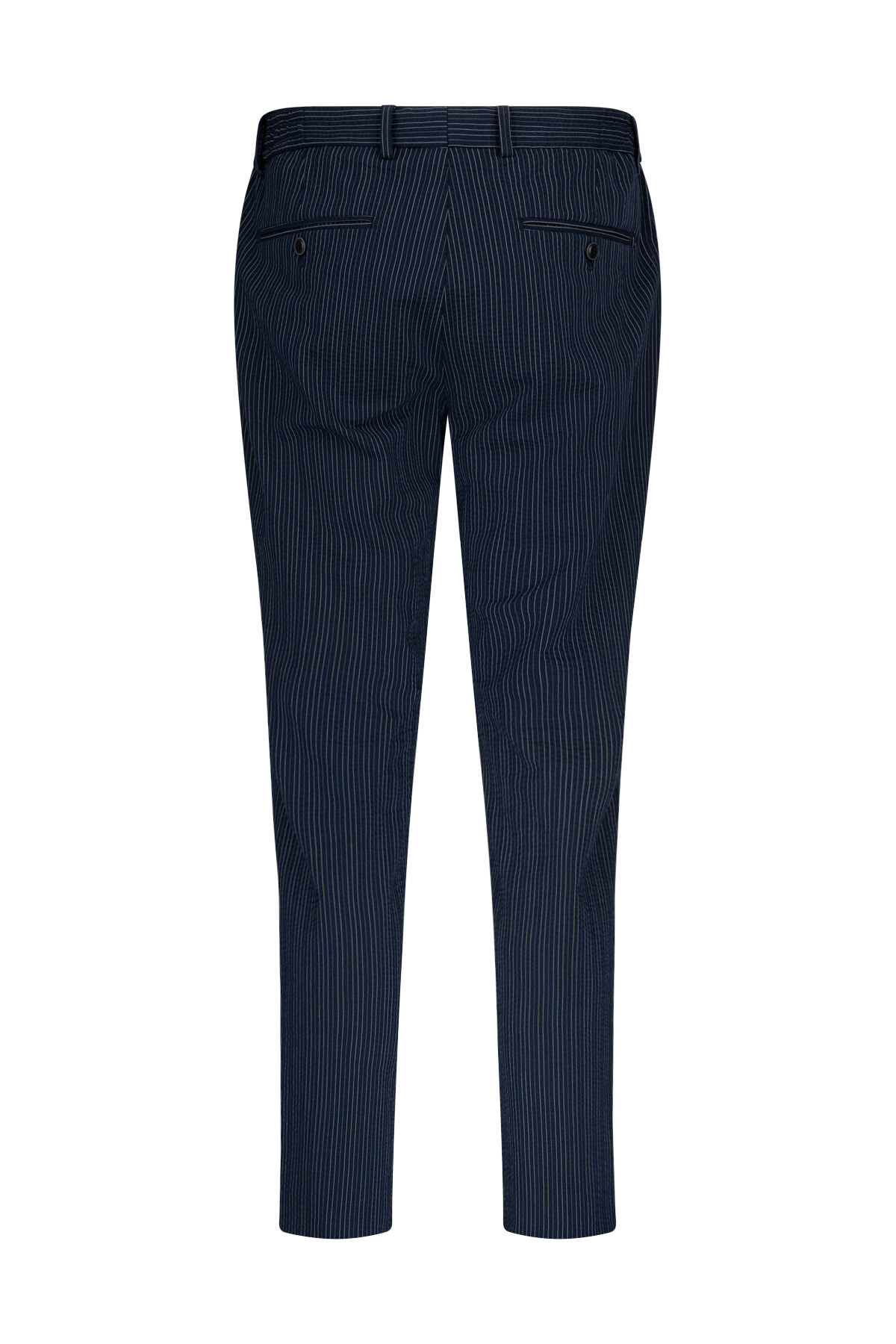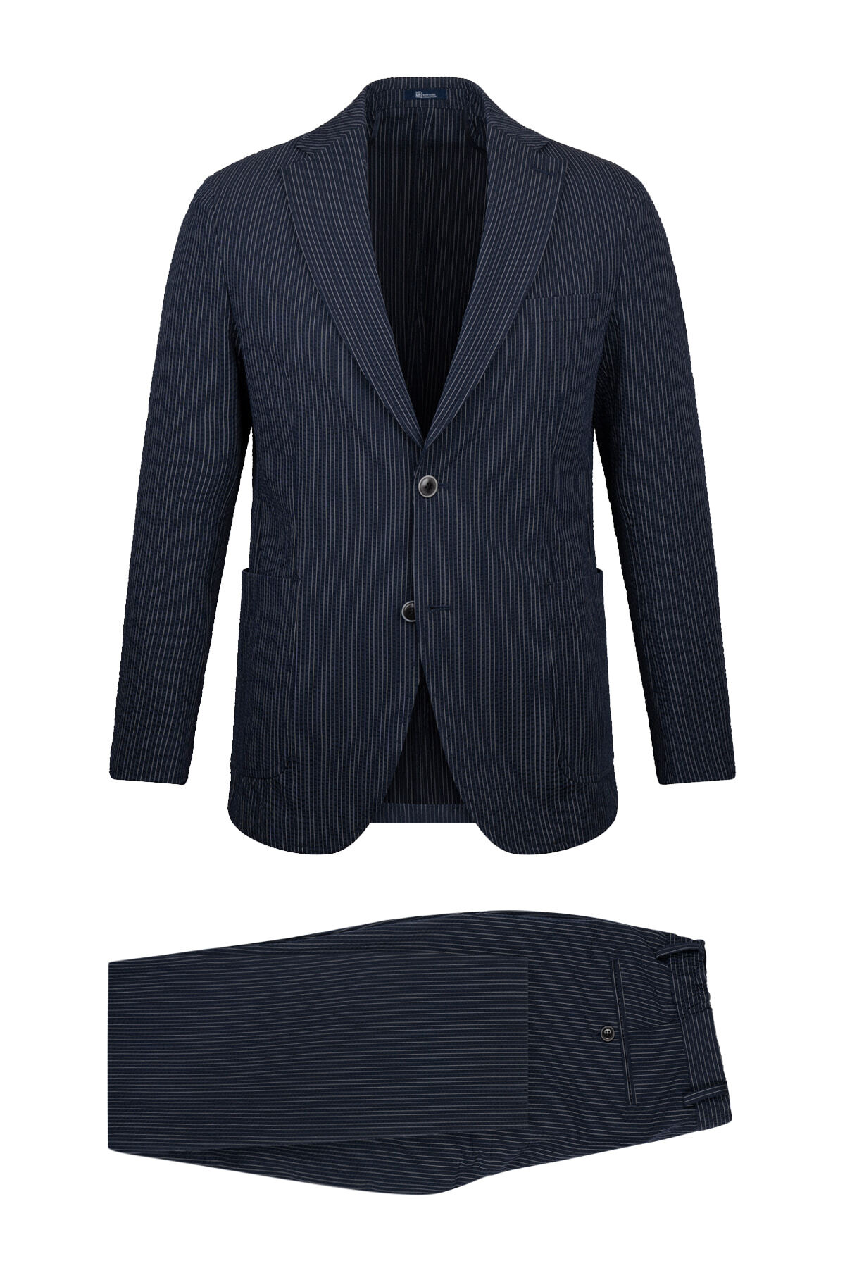 • Lacivert Comfort Fit Çizgili Mono Yaka Casual Takım Elbise, lacivertin klasik tonunu çizgili dokusuyla birleştirerek konforlu ve modern bir stil sunar. Comfort Fit kalıp, hareket özgürlüğü ve zarafeti dengeler.