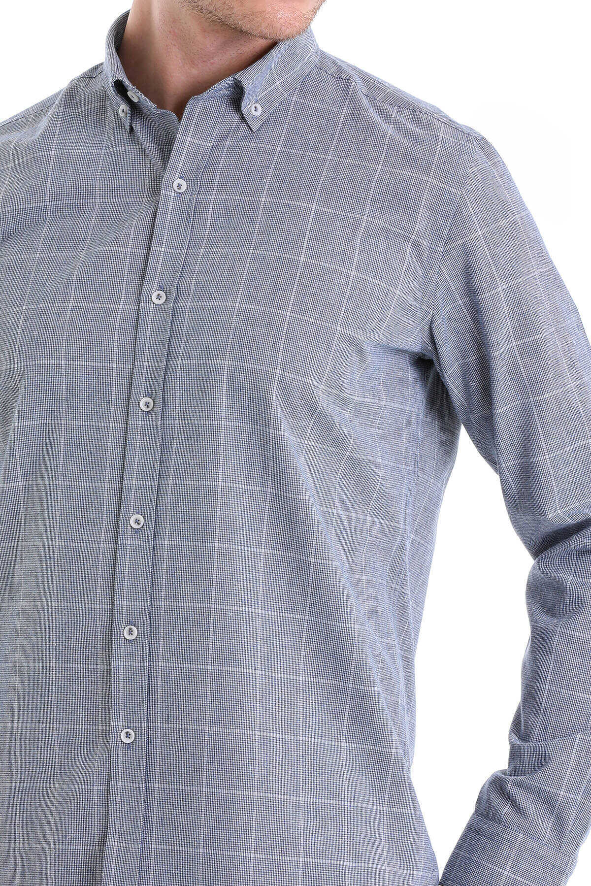 Lacivert Comfort Fit Desenli Düğmeli Yaka Uzun Kollu Casual Flanel Gömlek - 5