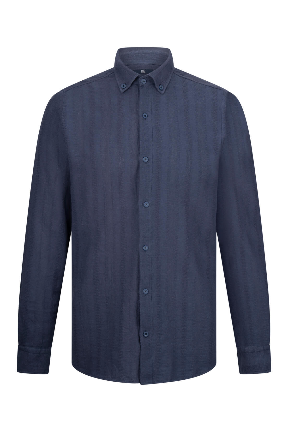 Lacivert Comfort Fit Düğmeli Yaka Uzun Kollu Pamuklu Gömlek