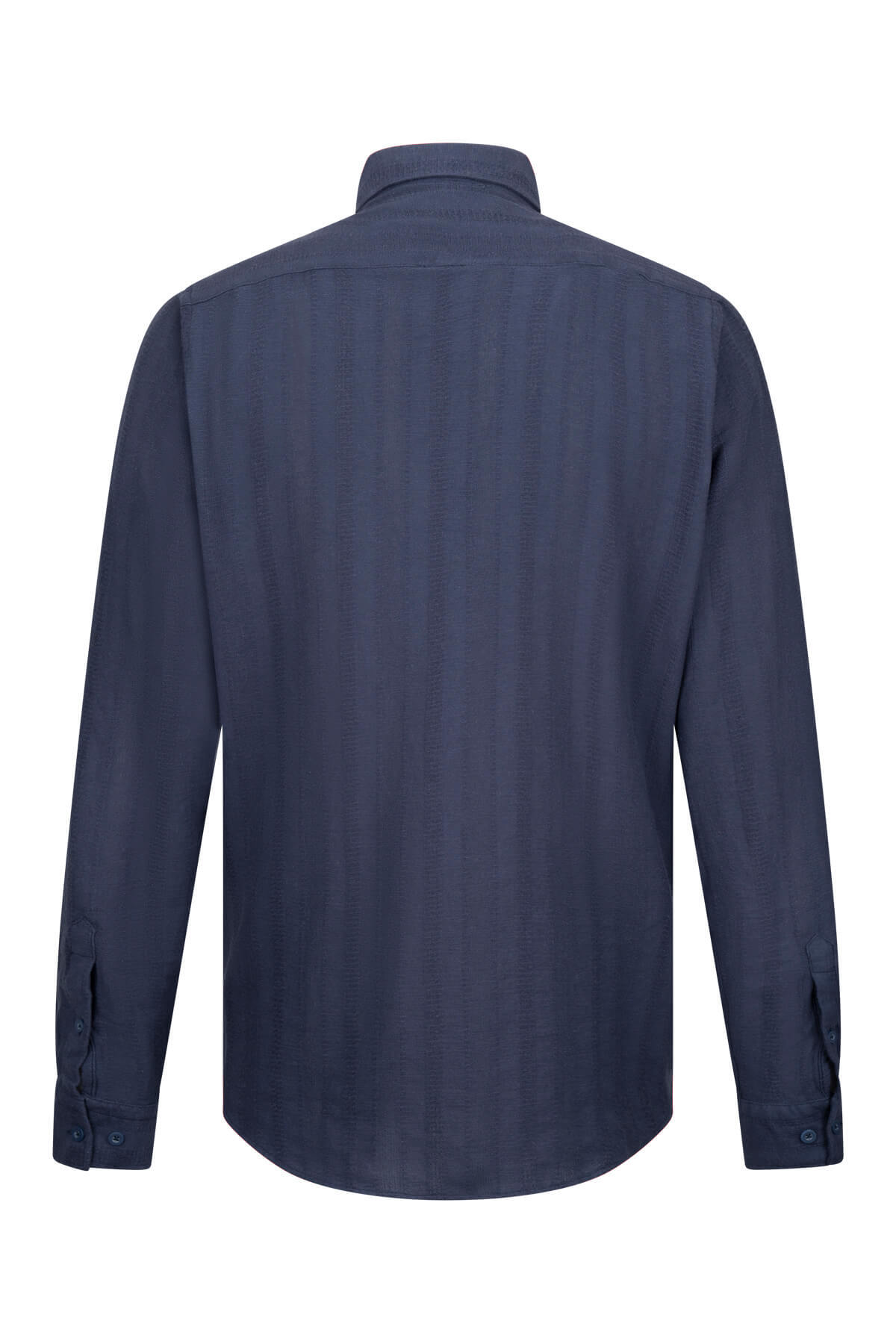 Lacivert Comfort Fit Düğmeli Yaka Uzun Kollu Pamuklu Gömlek - 2