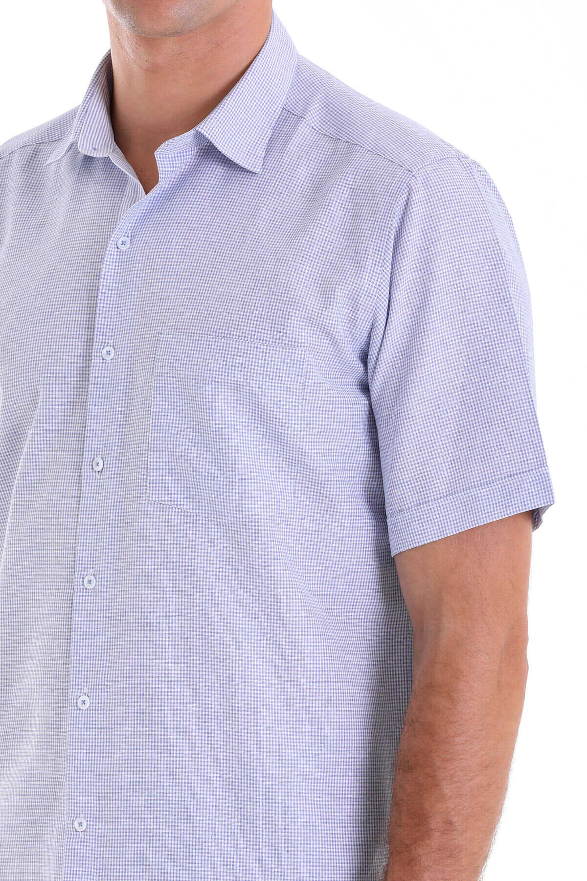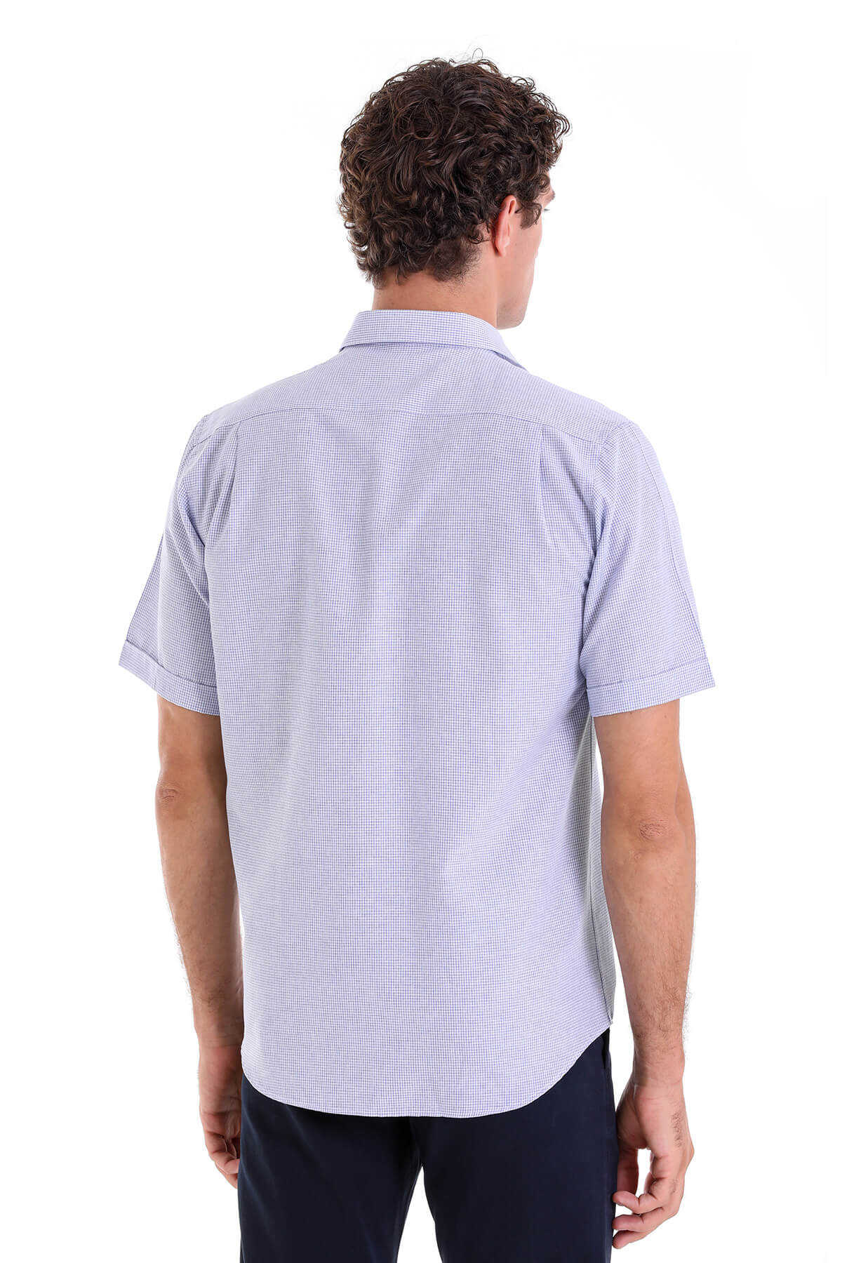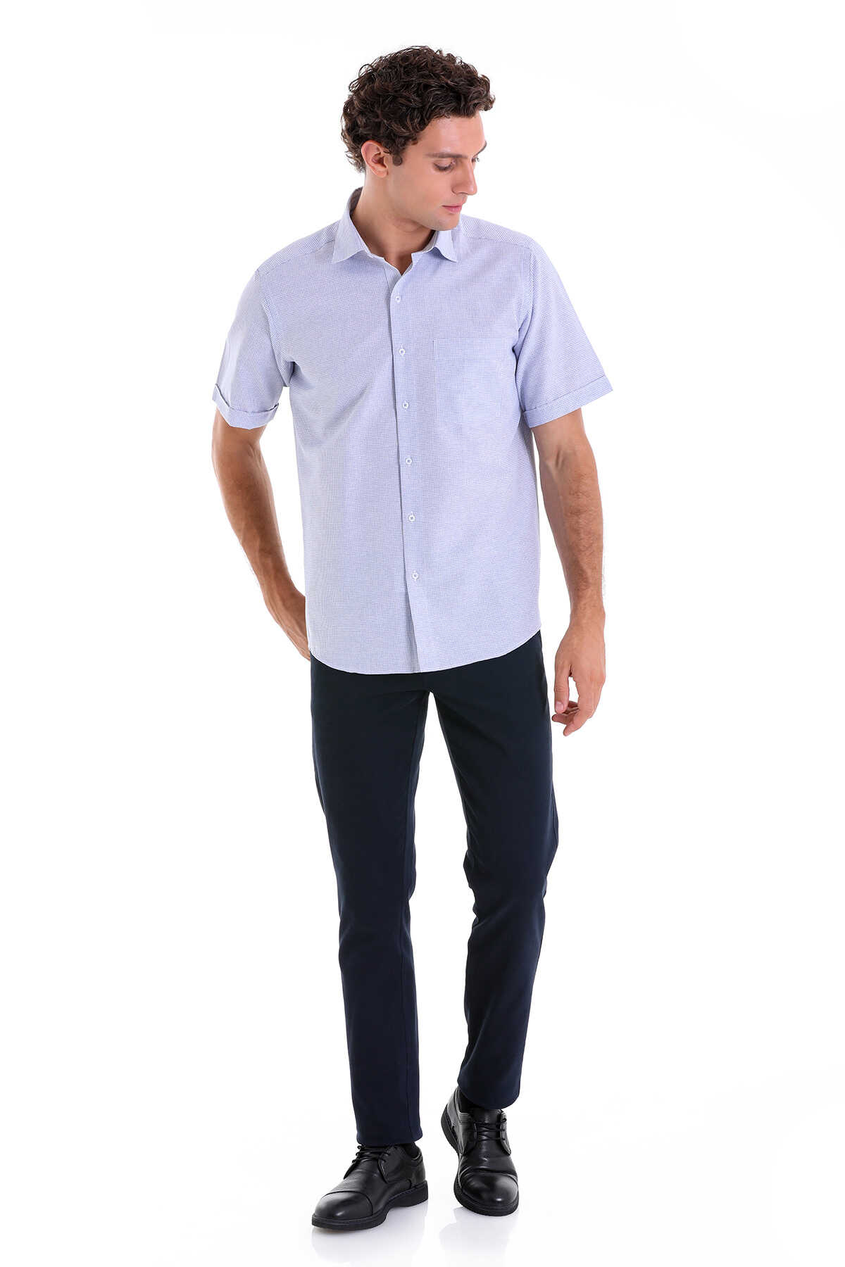 Lacivert Comfort Fit Kareli Pamuklu Slim Yaka Kısa Kol Klasik Gömlek - 12