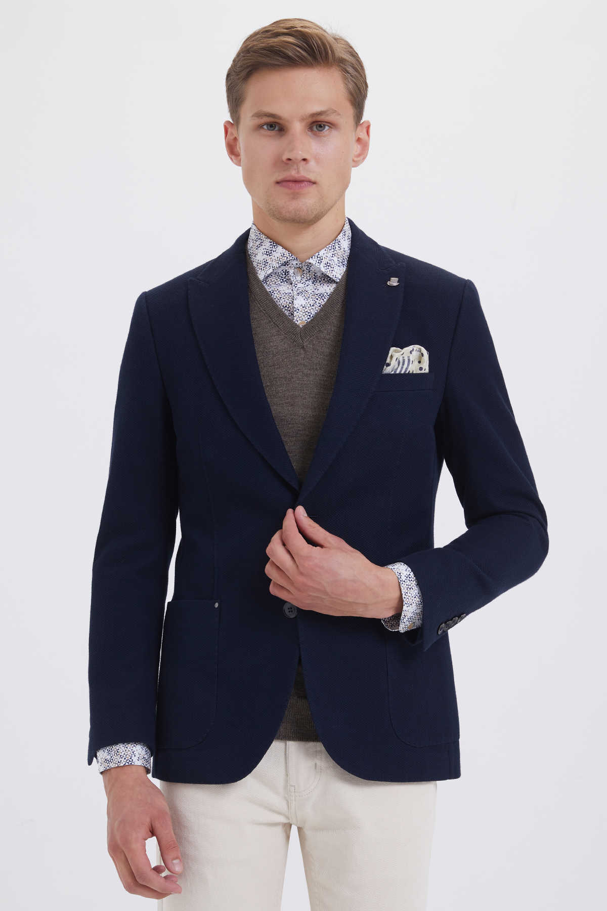 Desenli Slim Fit Lacivert Ceket