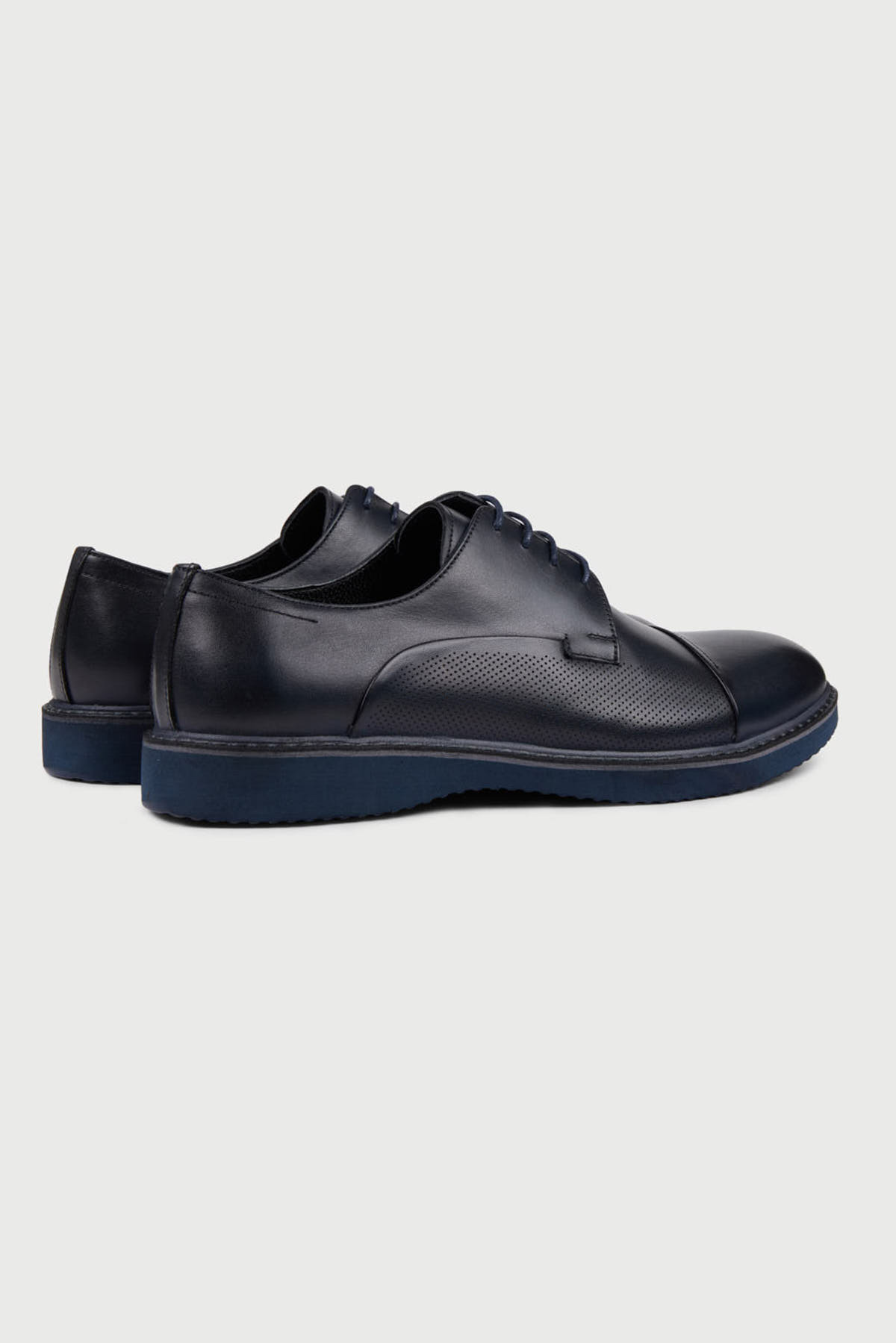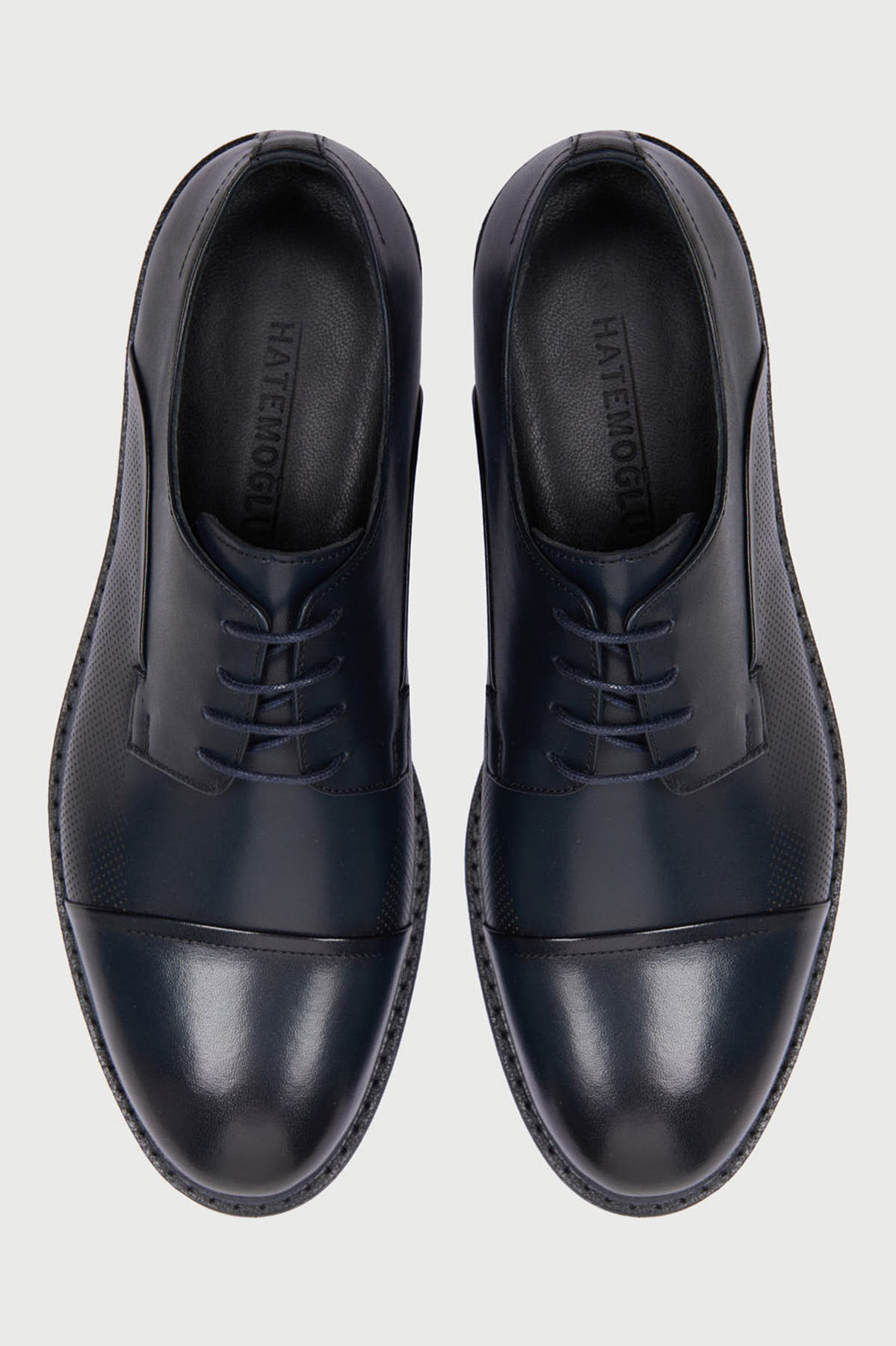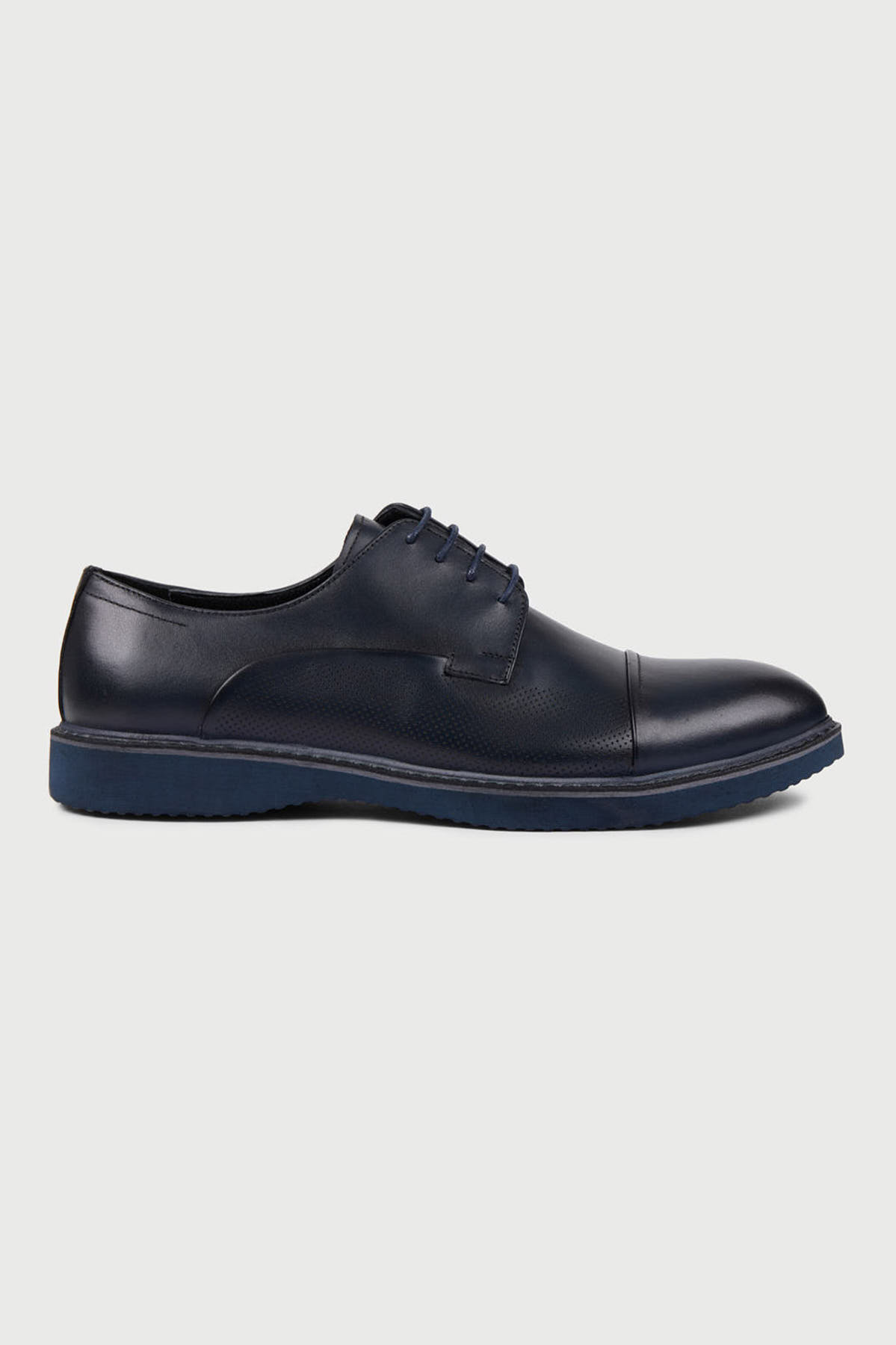 Lacivert Deri Bağcıklı Analin Ayakkabı
