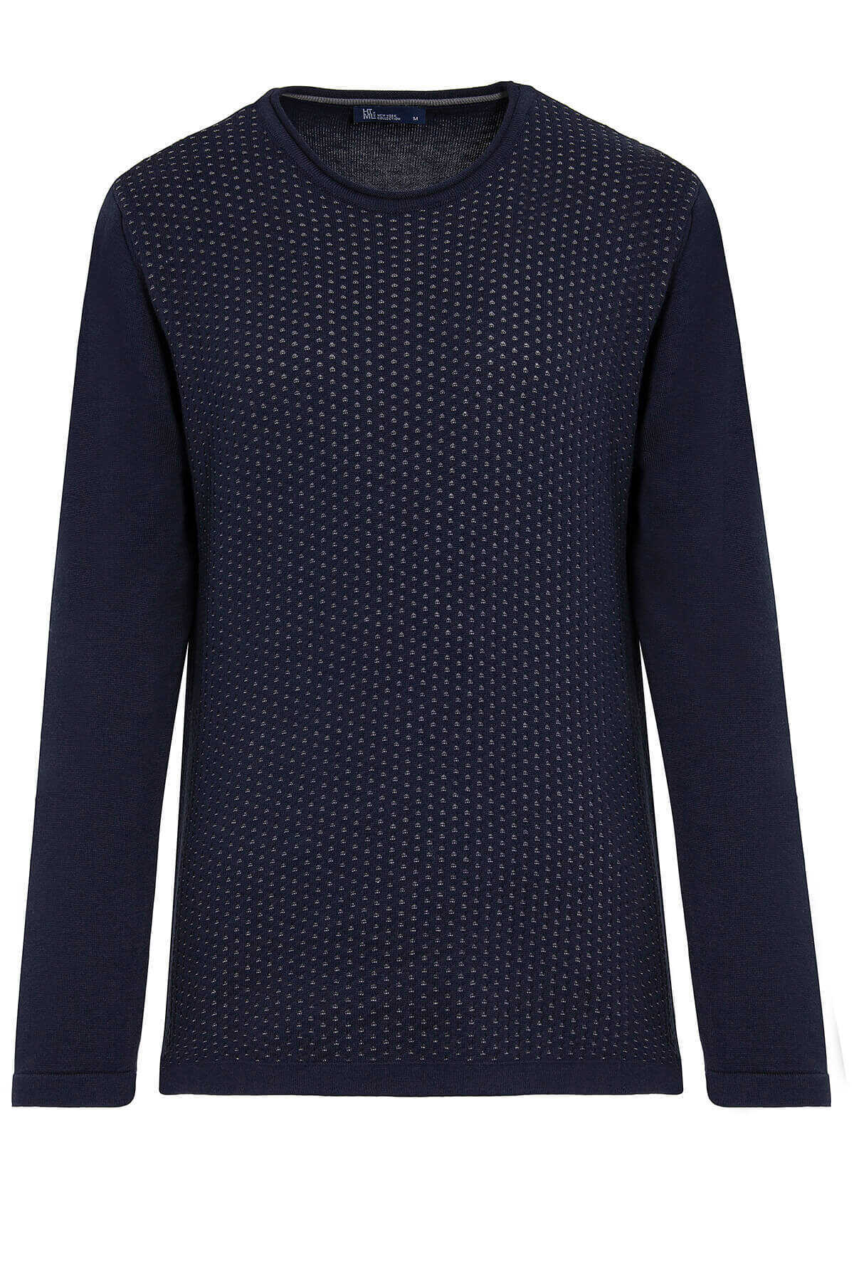 Lacivert Regular Fit Desenli Bisiklet Yaka Pamuklu Triko Kazak