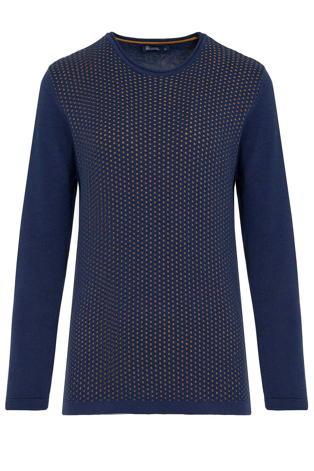 Hardal Regular Fit Desenli Bisiklet Yaka Pamuklu Triko Kazak