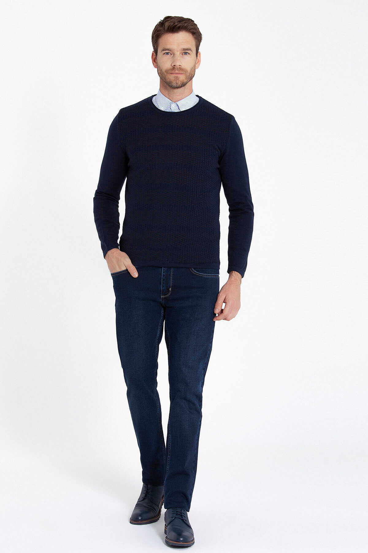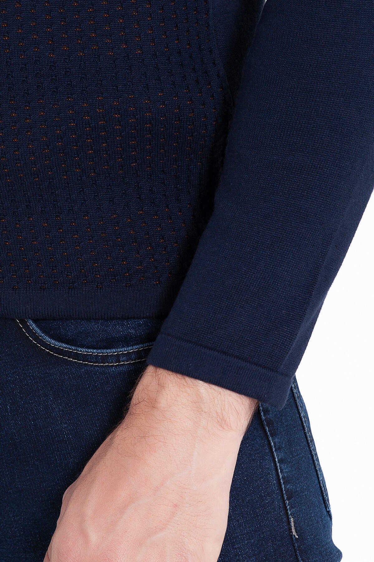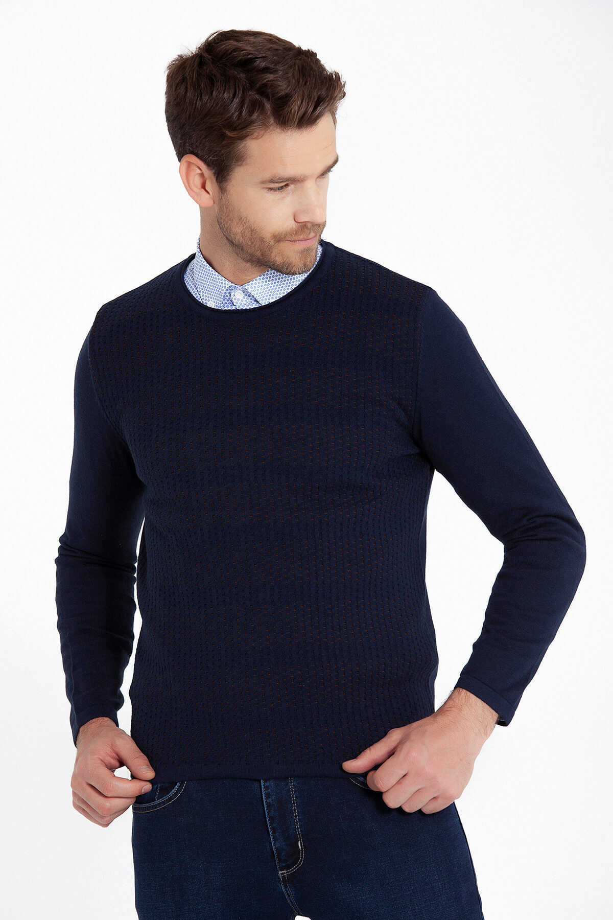 Lacivert Desenli Bisiklet Yaka Pamuklu Kazak