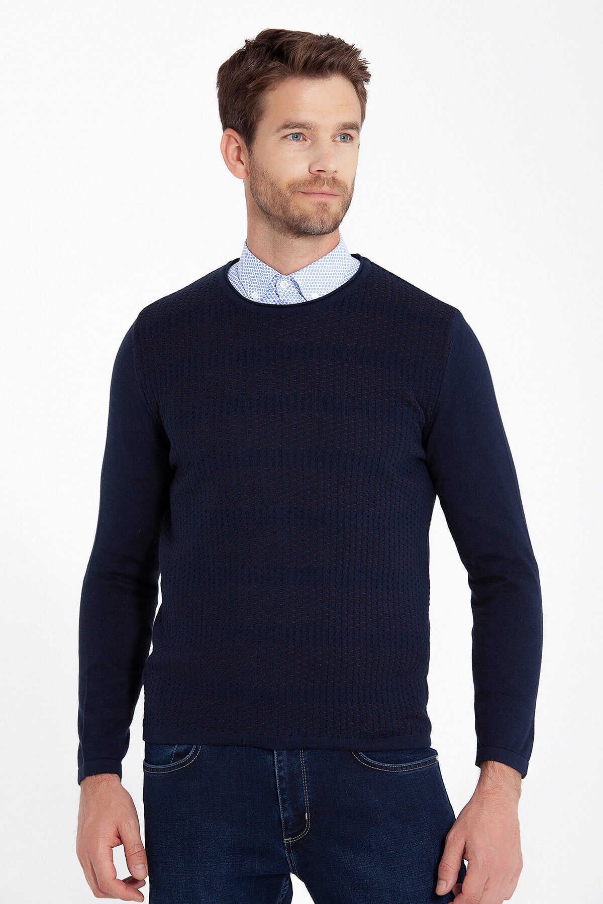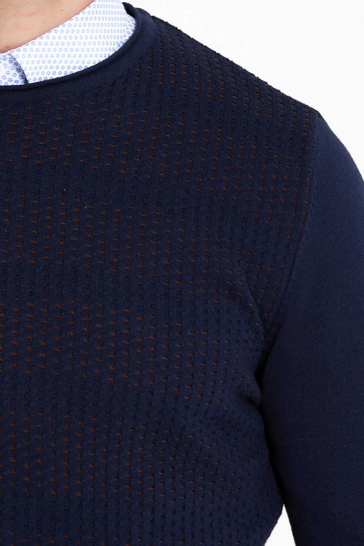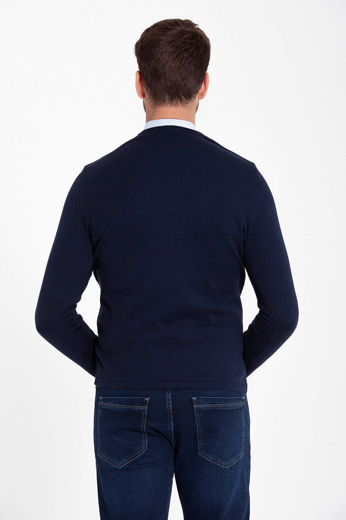 Lacivert Desenli Bisiklet Yaka Pamuklu Kazak