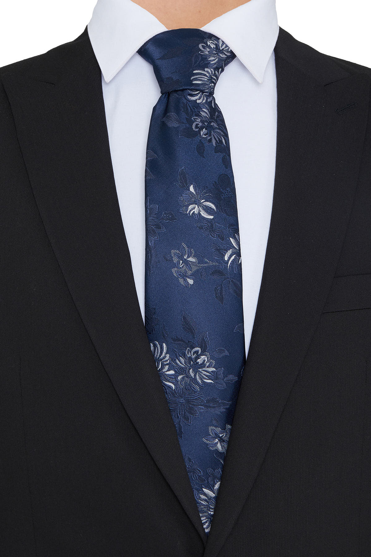 Lacivert Desenli Klasik Micro Kravat