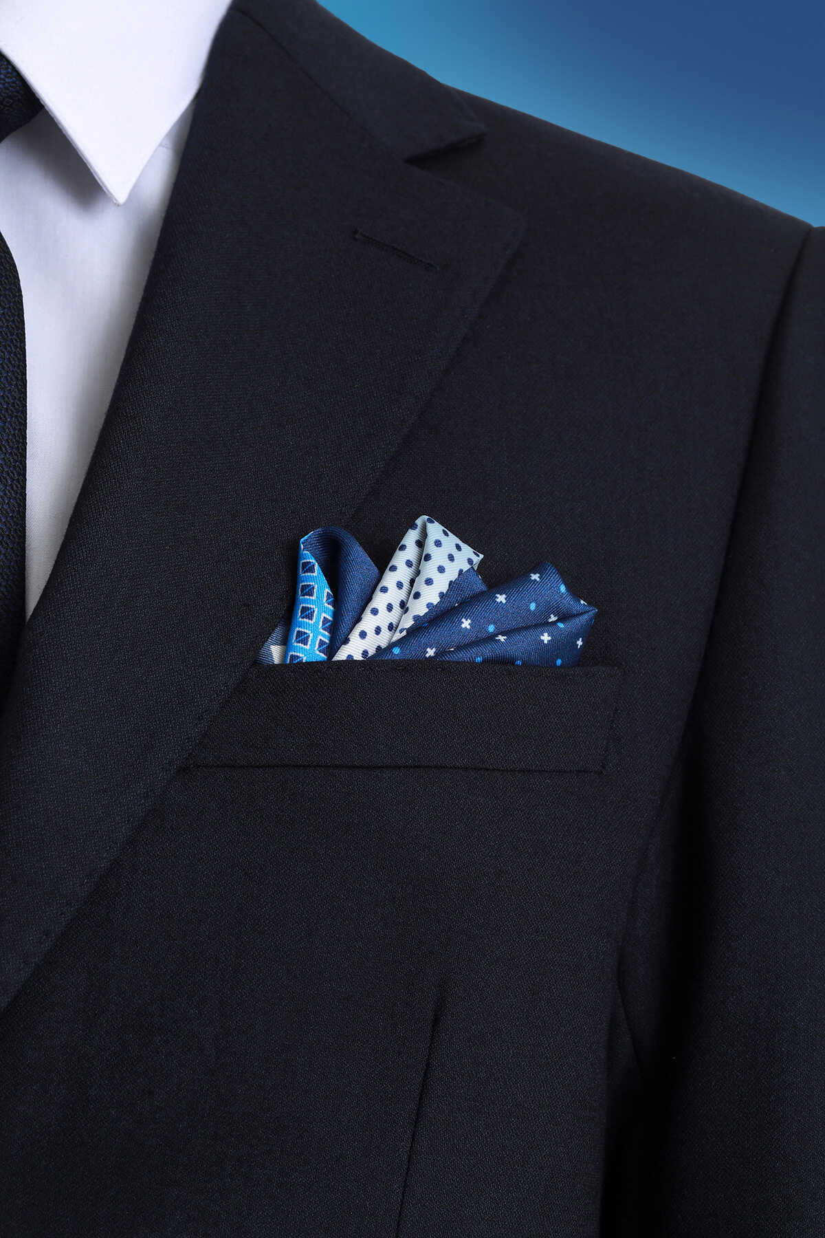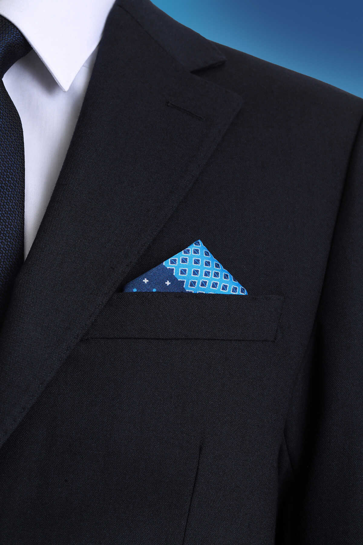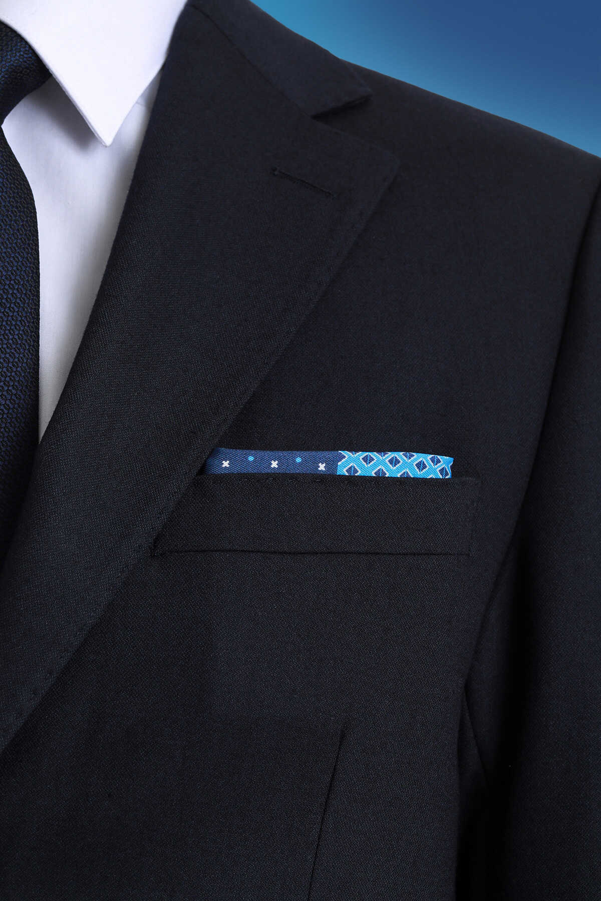 Lacivert Desenli Klasik Saten Cep Mendili, resmi kıyafetlerinize ve takım elbiselerinize zarif ve şık bir dokunuş katmak için tasarlanmış bir aksesuardır. Klasik kalıbı ve zarif deseni sayesinde, her türlü resmi kıyafetle uyum sağlar. %100 polyesterden üretilen kumaşı, ürüne parlak ve ipeksi bir doku kazandırır.