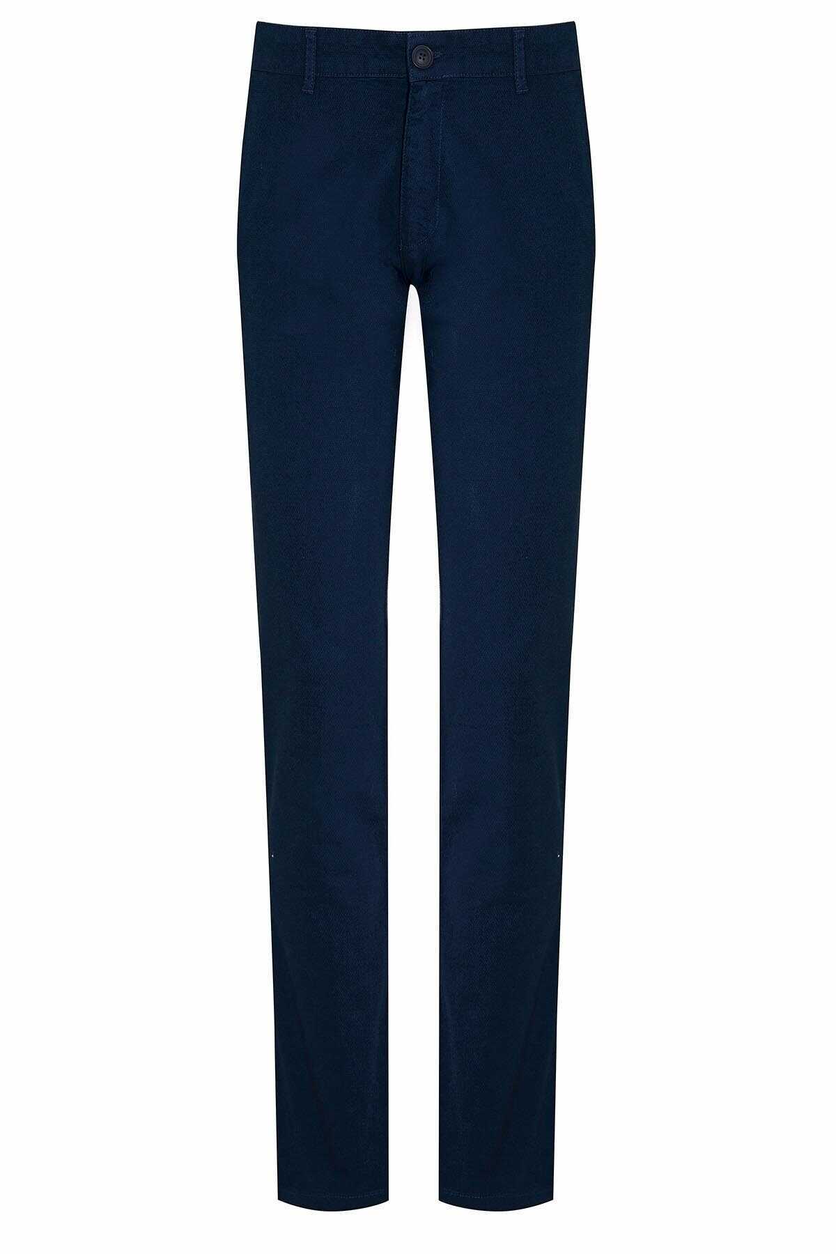 Lacivert Regular Fit Desenli Pamuklu Yandan Cep Kanvas Pantolon