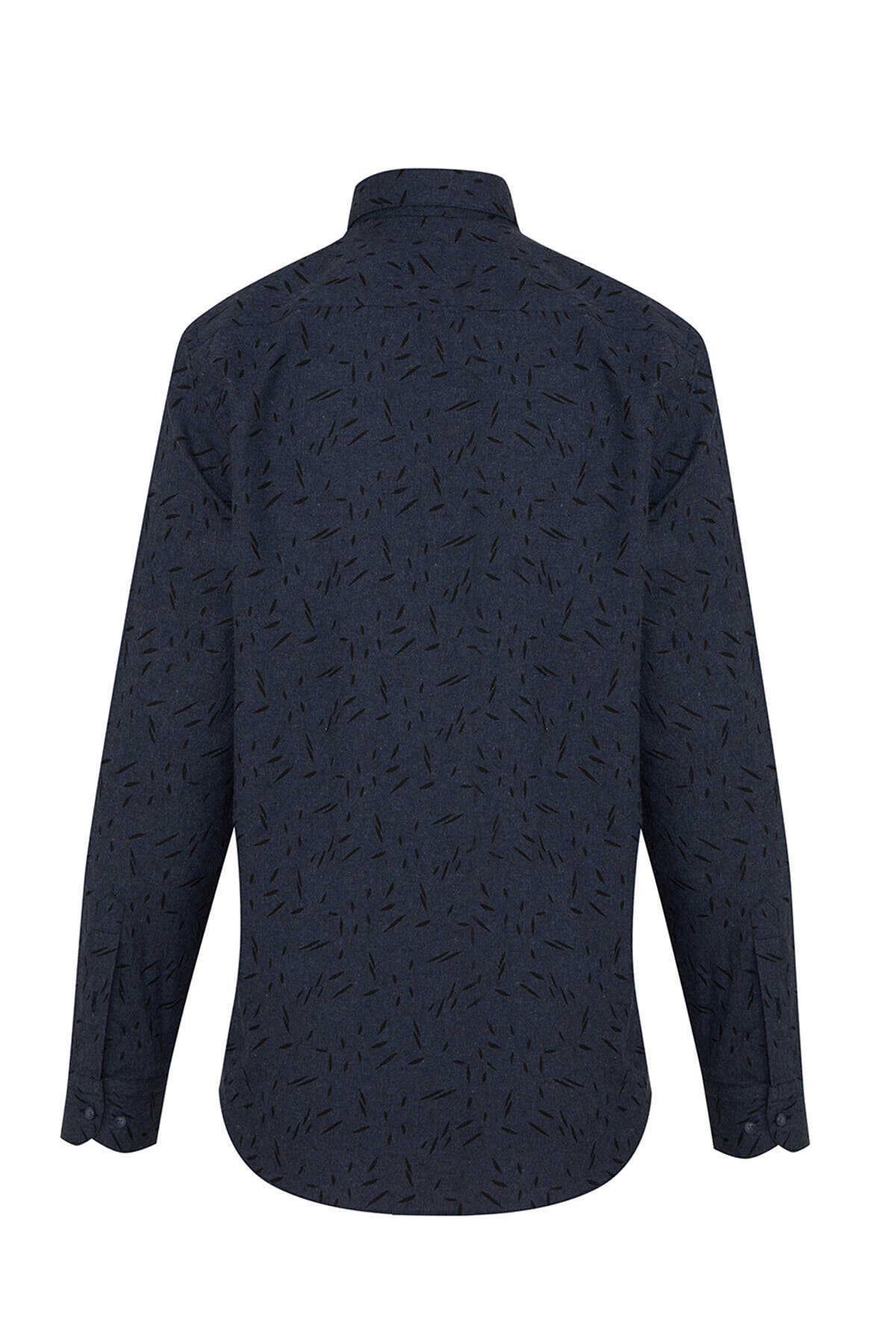 Lacivert Slim Fit Baskılı Düğmeli Yaka Uzun Kollu Casual Flanel Gömlek