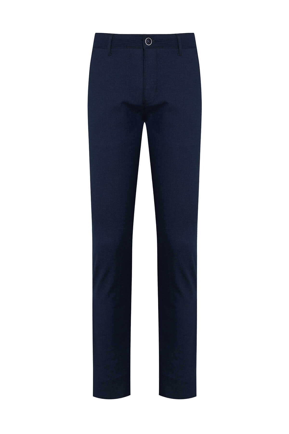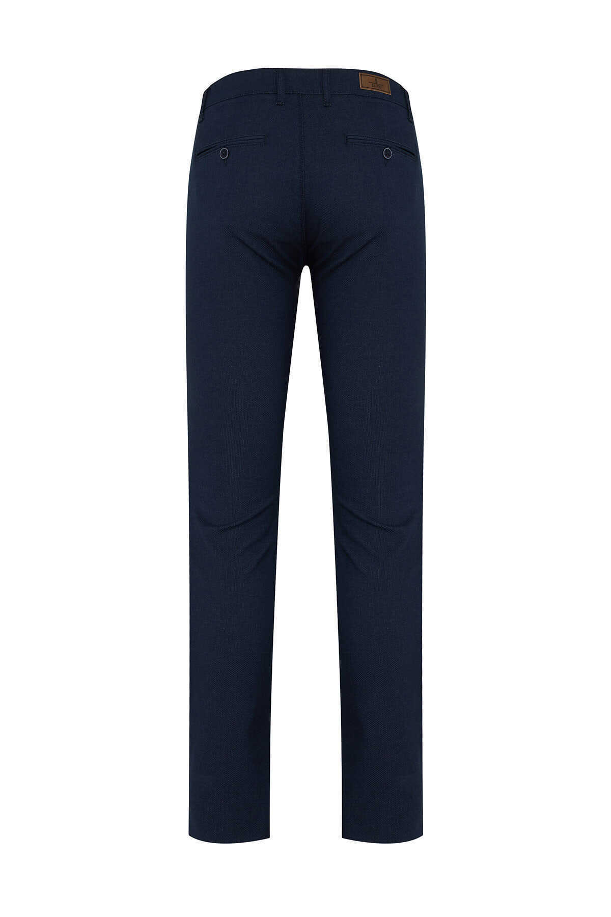 Lacivert Slim Fit Desenli Pamuklu Yandan Cep Kanvas Pantolon