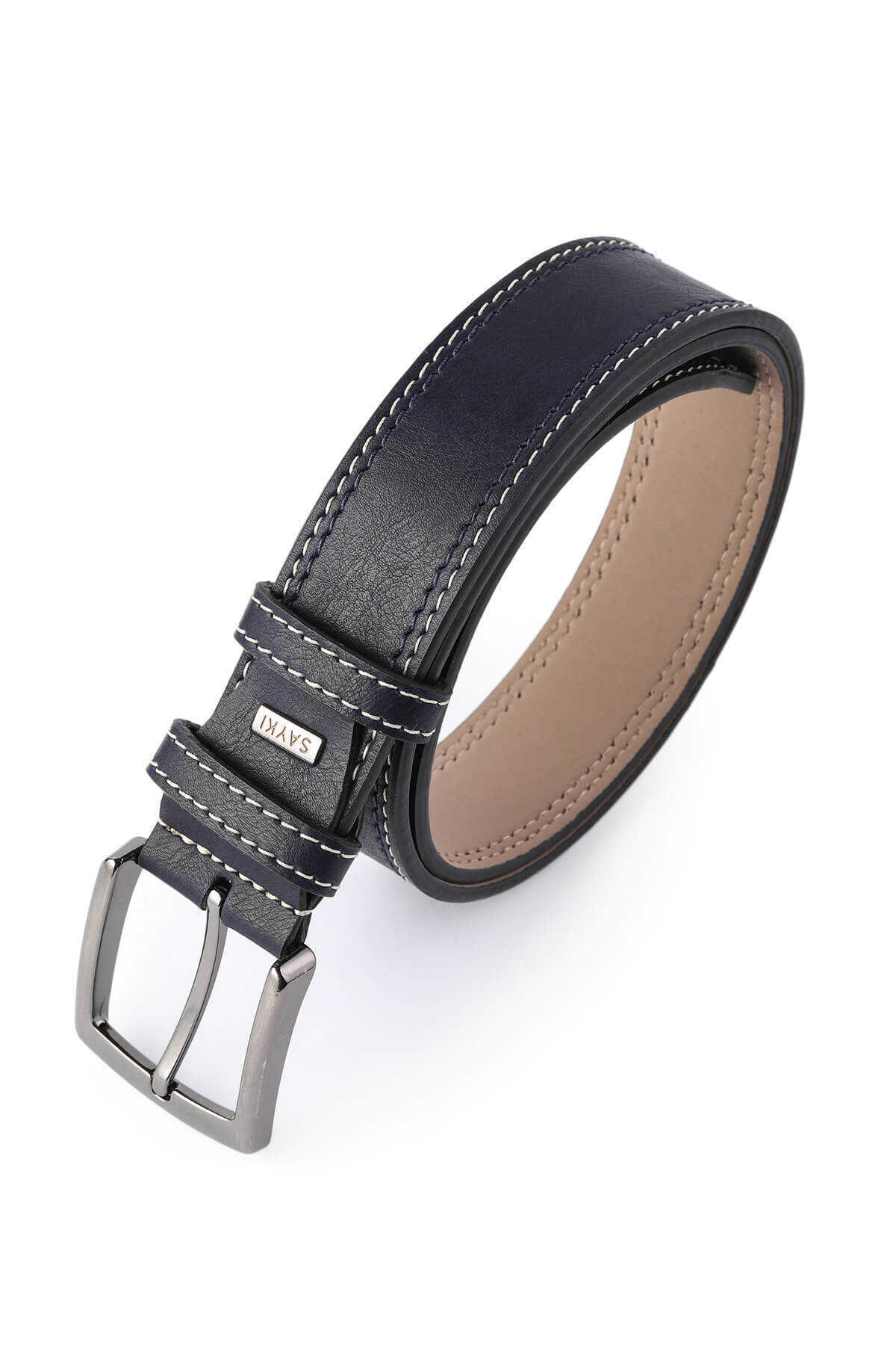 Lacivert Dikişli Vintage Deri Spor Kemer