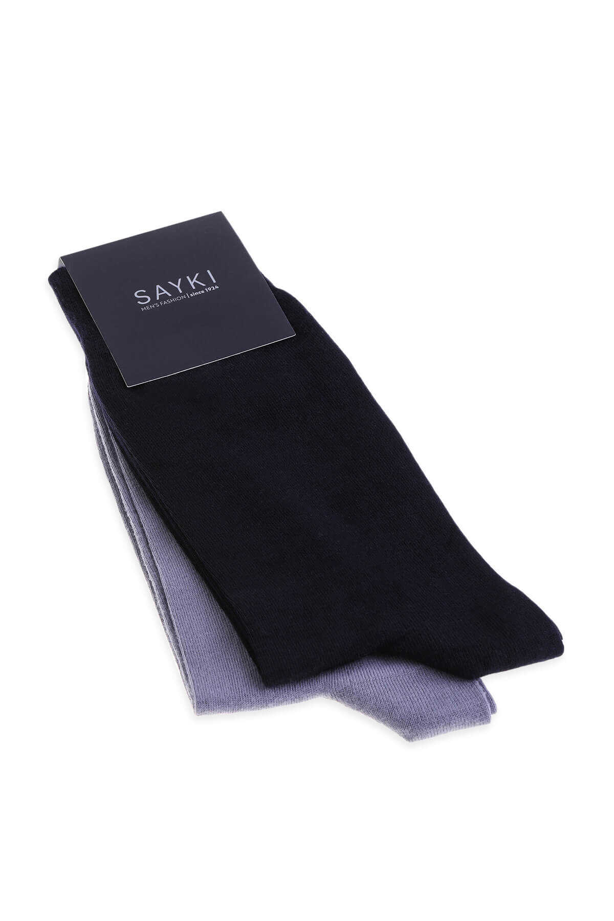Lacivert-Gri İkili Dikişsiz Bambu Çorap