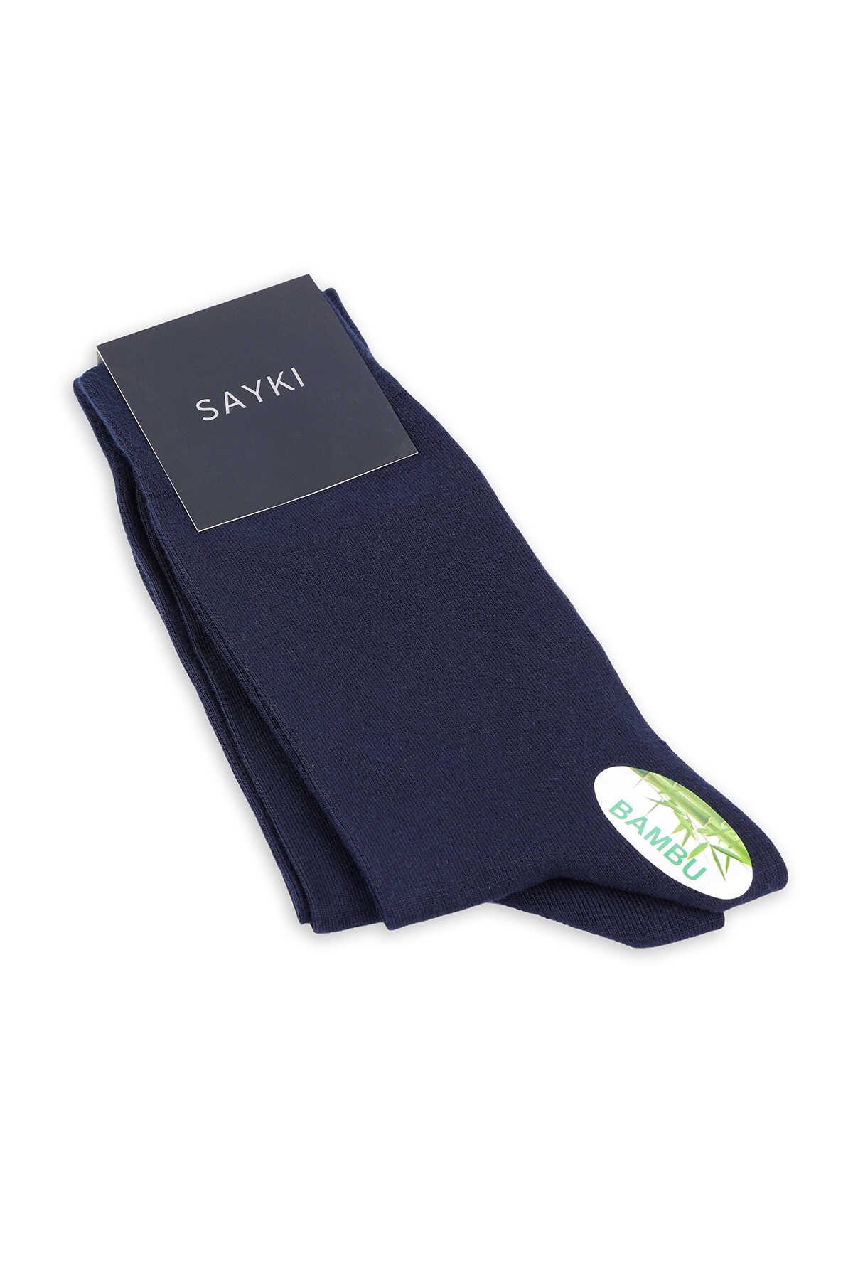 Lacivert Pamuklu Dikişsiz İkili Bambu Soket Çorap