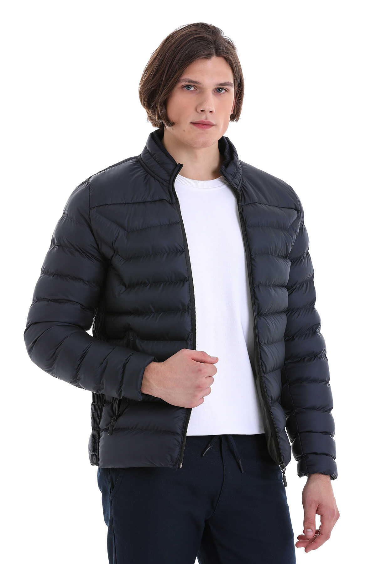 Lacivert Ekstra Slim Fit Hakim Yaka Şişme Mont