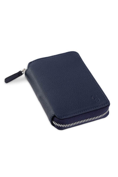 Lacivert Floter 100% Deri Fermuarlı Cüzdan - 3
