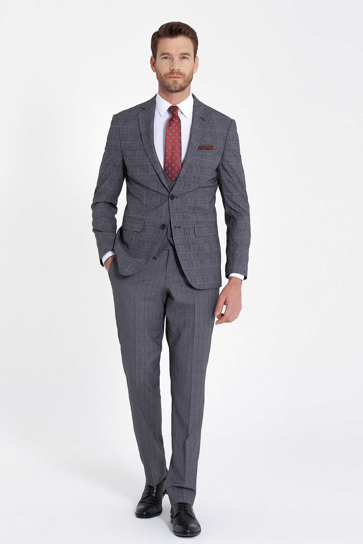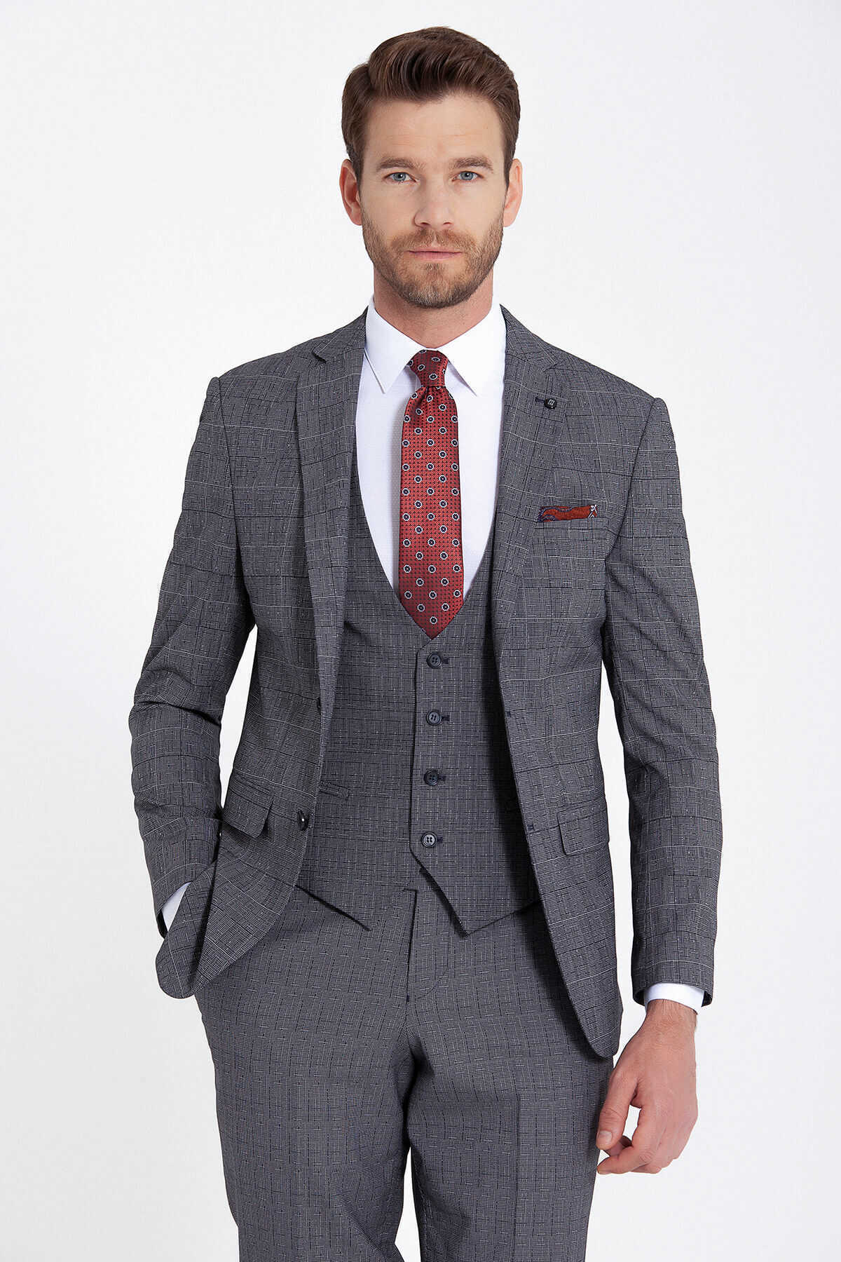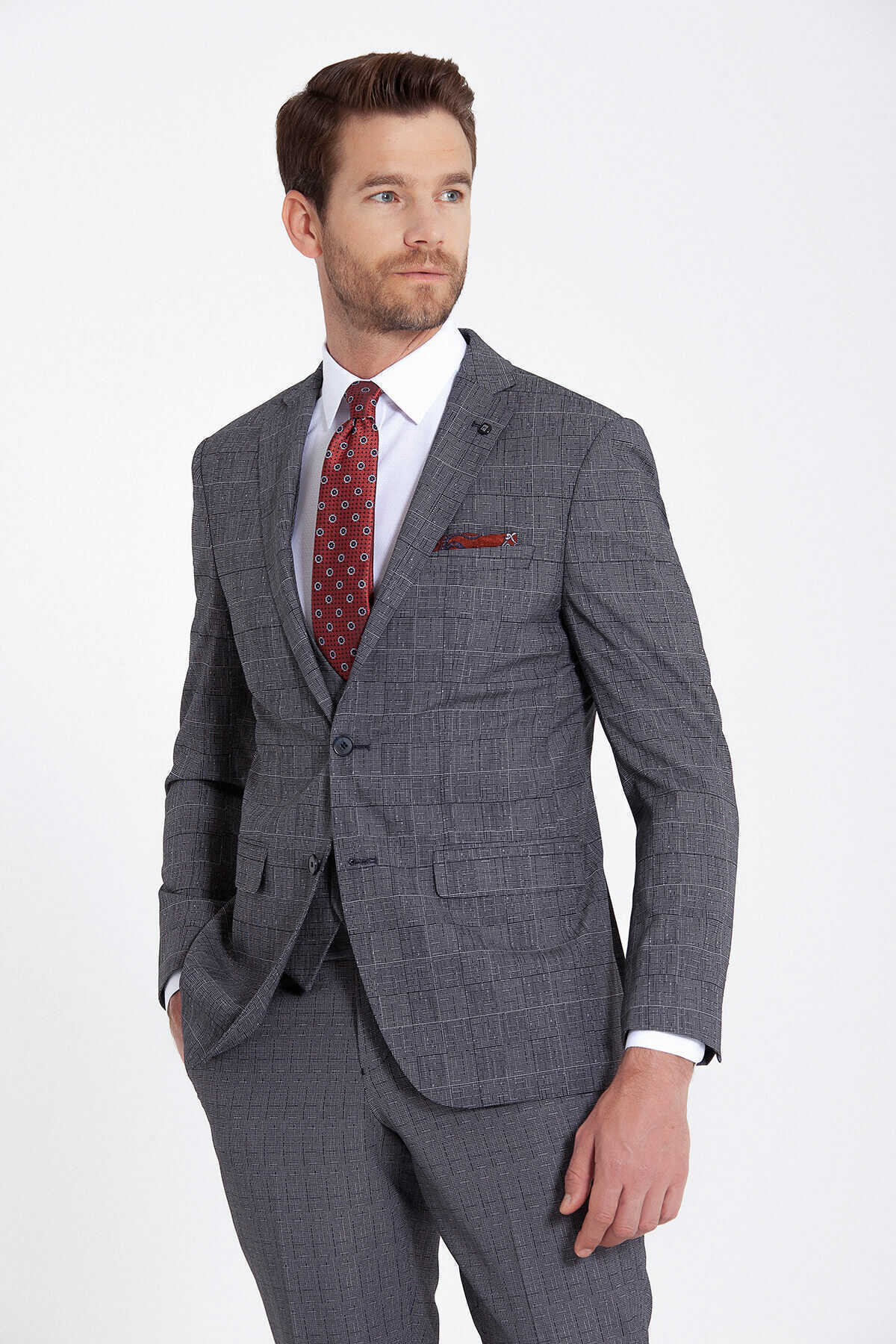 Ceket Kareli Pantolon ve Yelek Düz kumaştandır