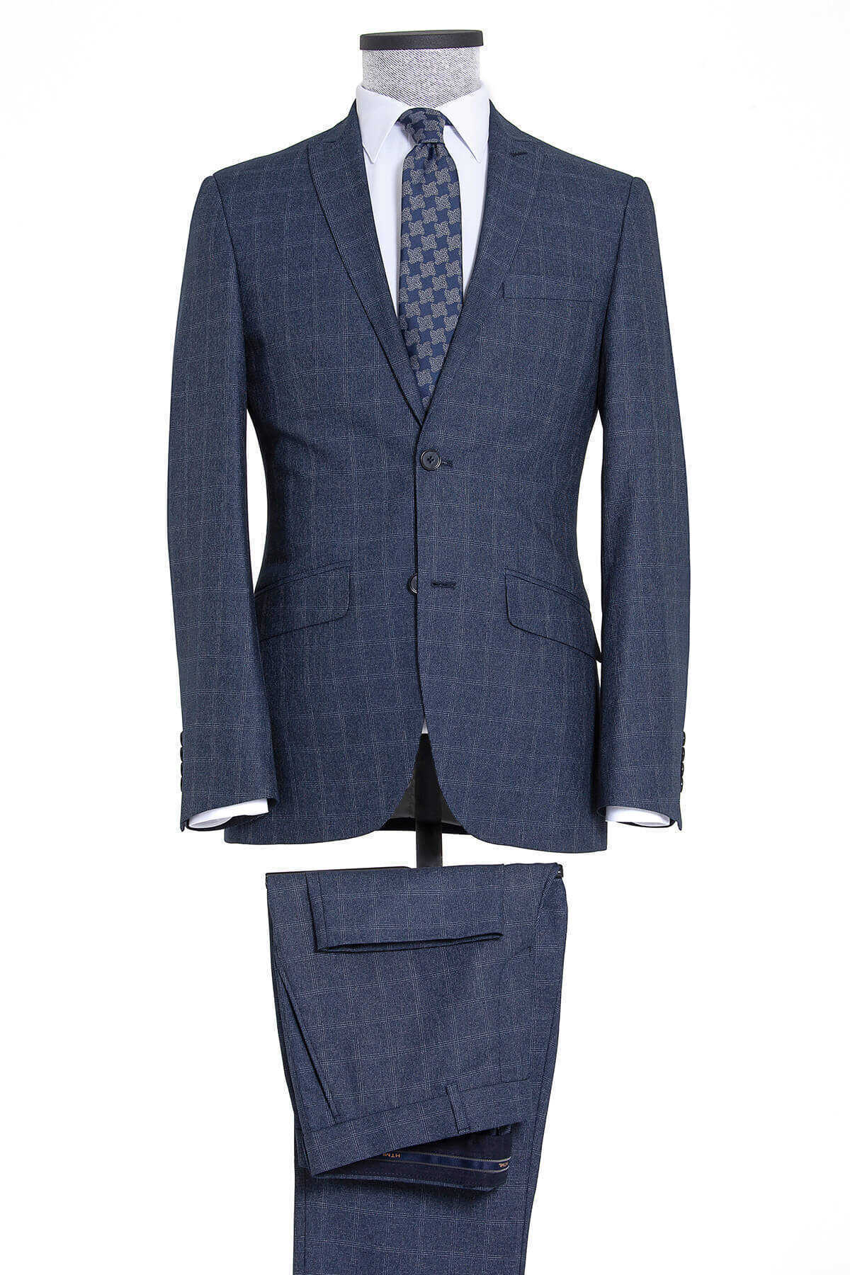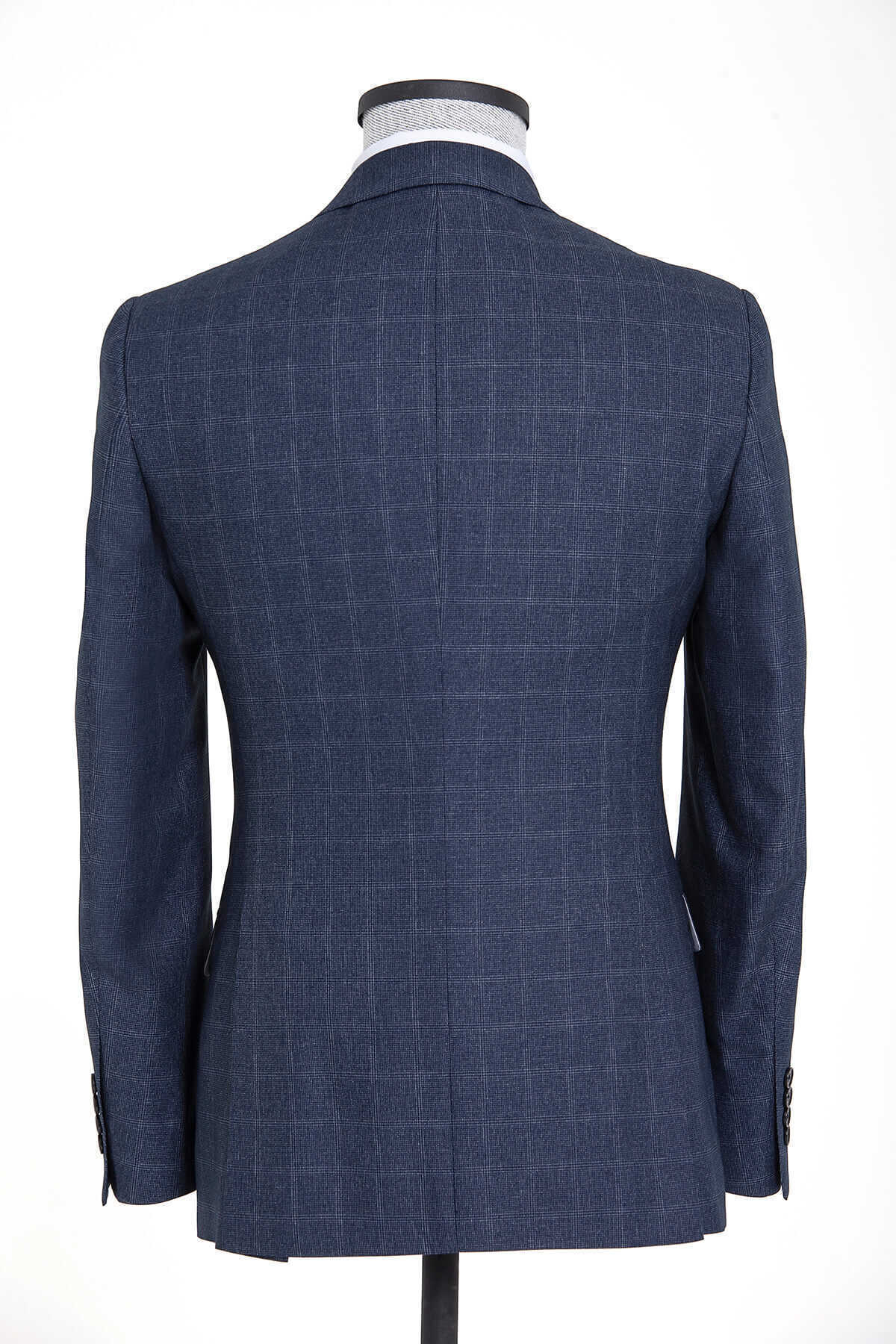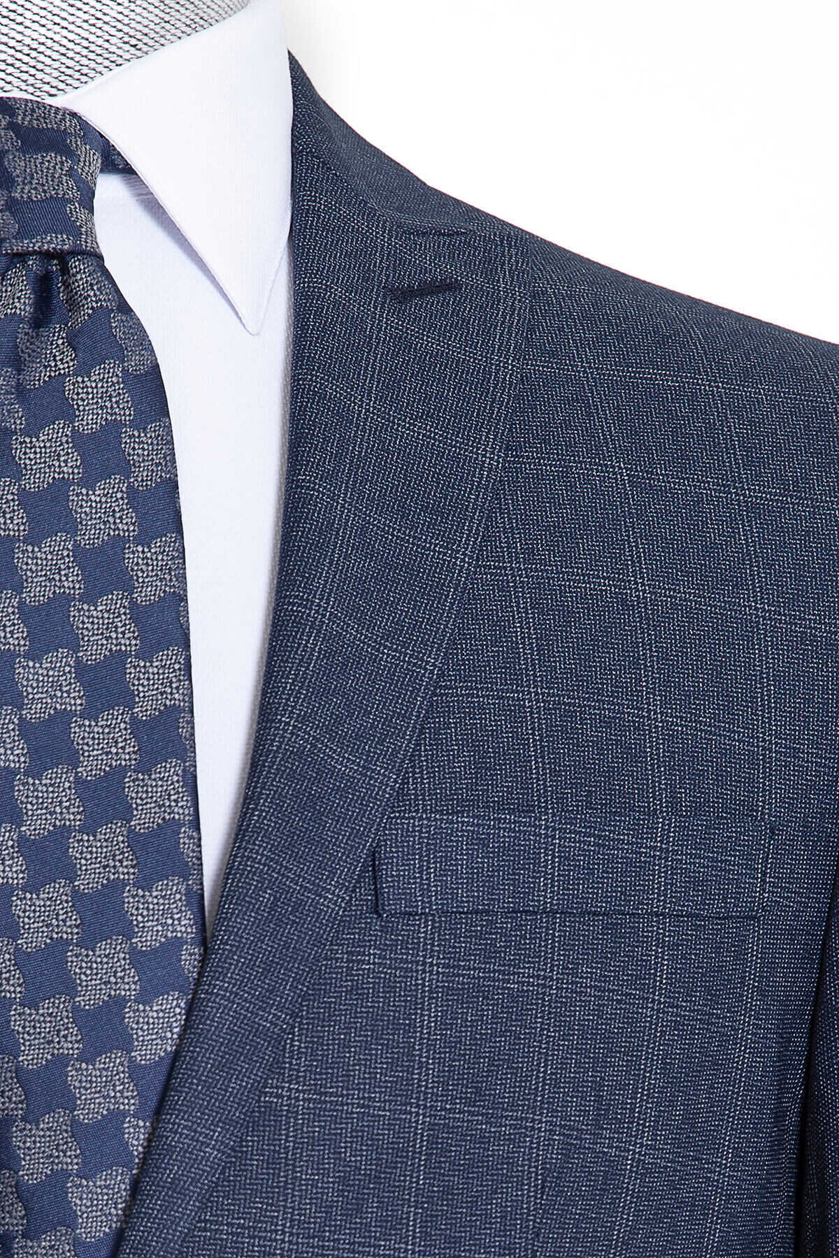 Lacivert Kareli Slim Fit Takım Elbise