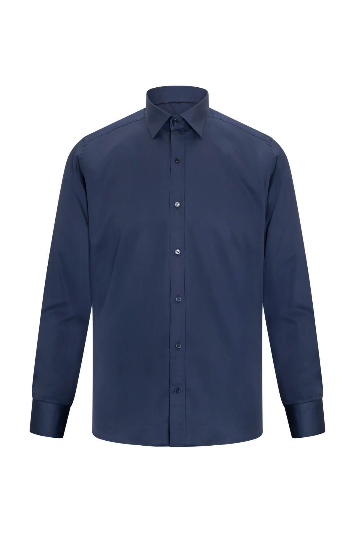 Lacivert Klasik Fit Slim Yaka Gömlek, klasik ve modern bir tarzı bir araya getiriyor. %100 pamuk kumaşı sayesinde doğal, nefes alabilen ve rahat bir kullanım sunar. Klasik Fit kalıbı ve cepsiz tasarımıyla sade ve şık bir görünüm sağlarken, Slim Yaka detayları ürüne modern bir dokunuş katıyor.
