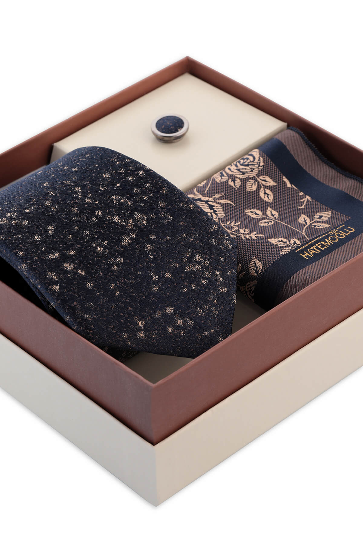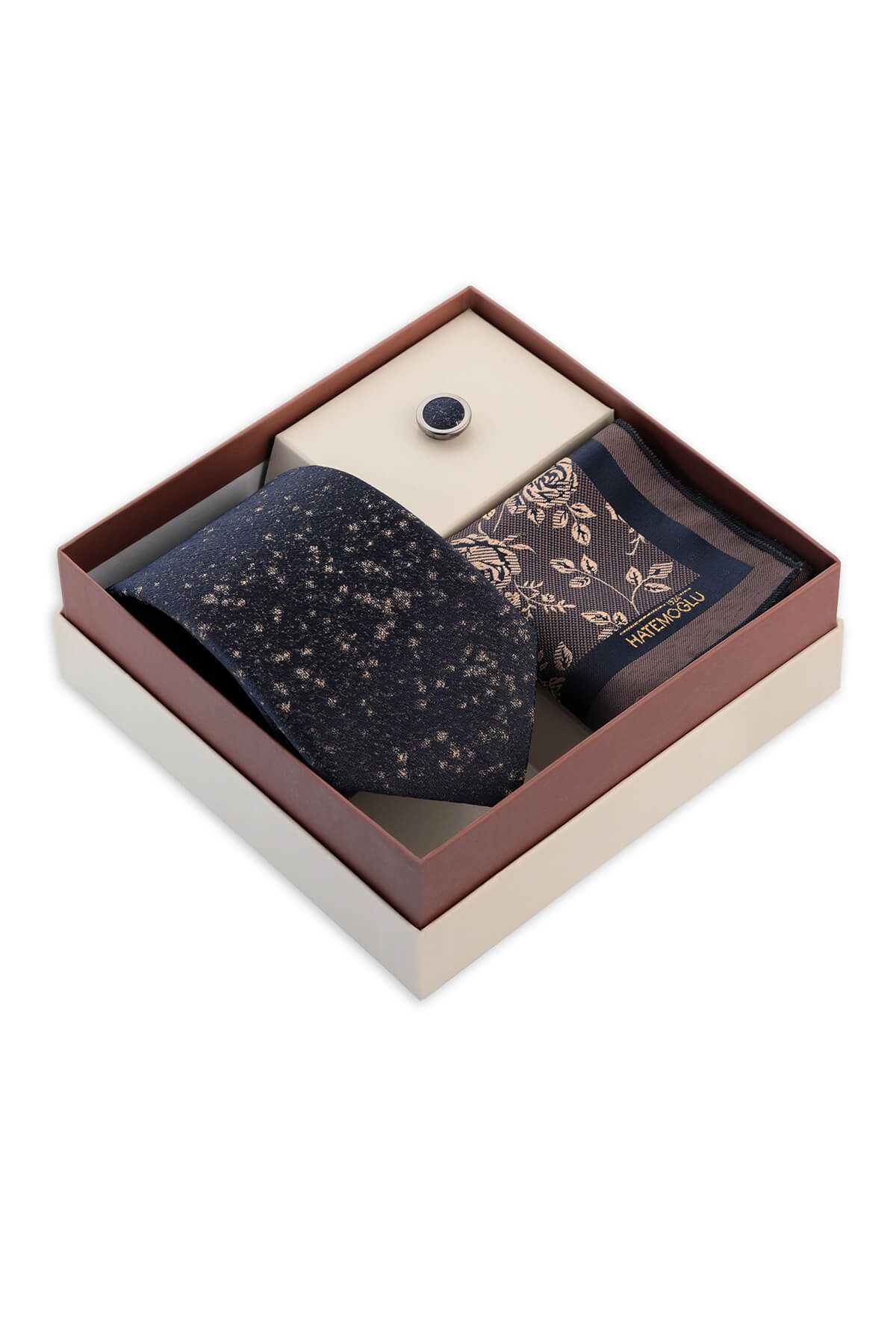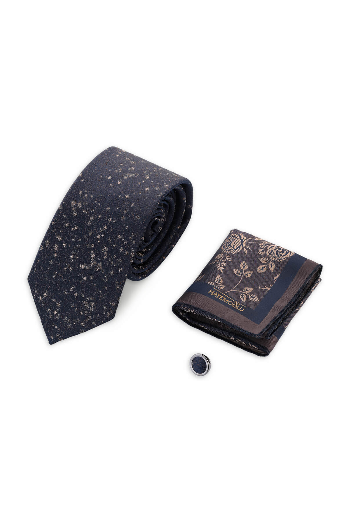 Lacivert Kravat Mendil ve Yaka Rozeti 3'lü Set
