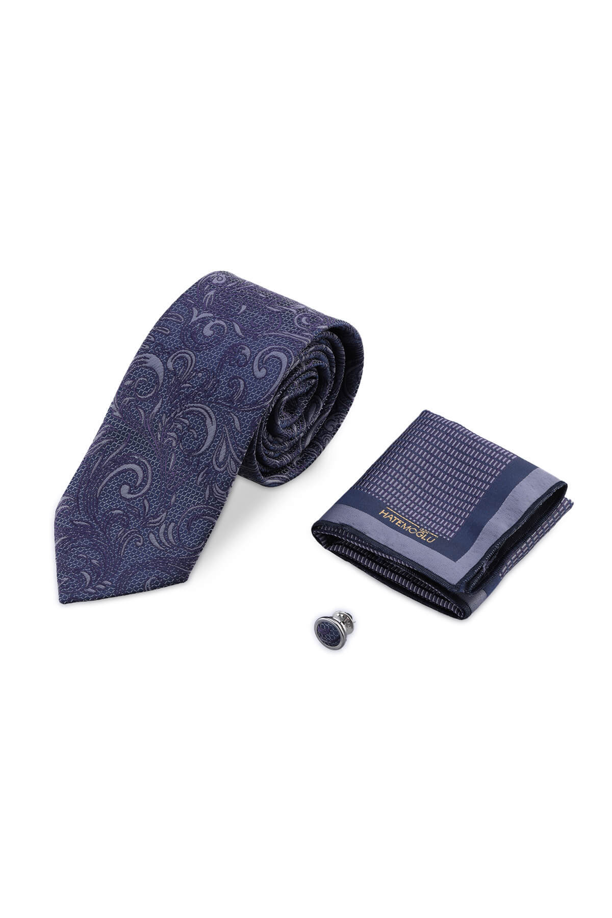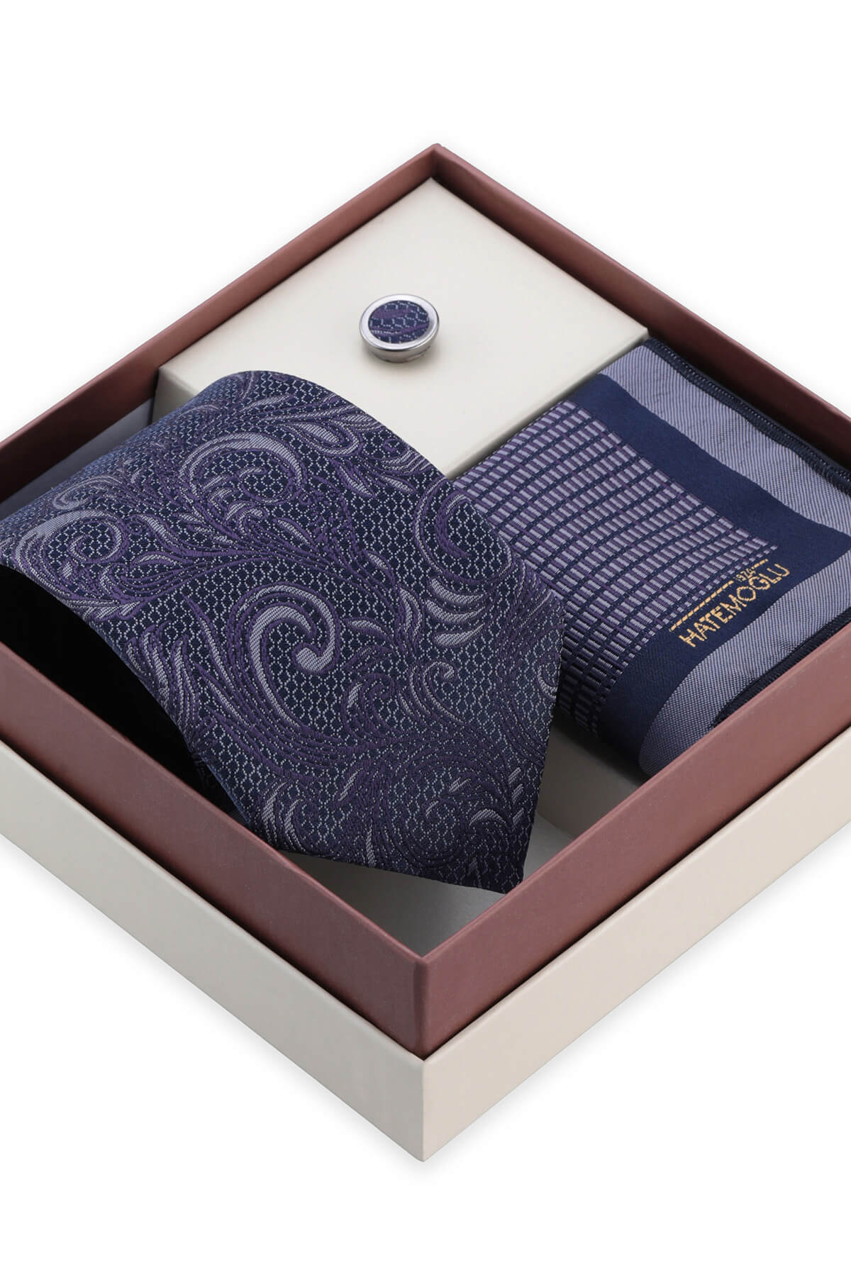 Lacivert Kravat Mendil ve Yaka Rozeti 3'lü Set