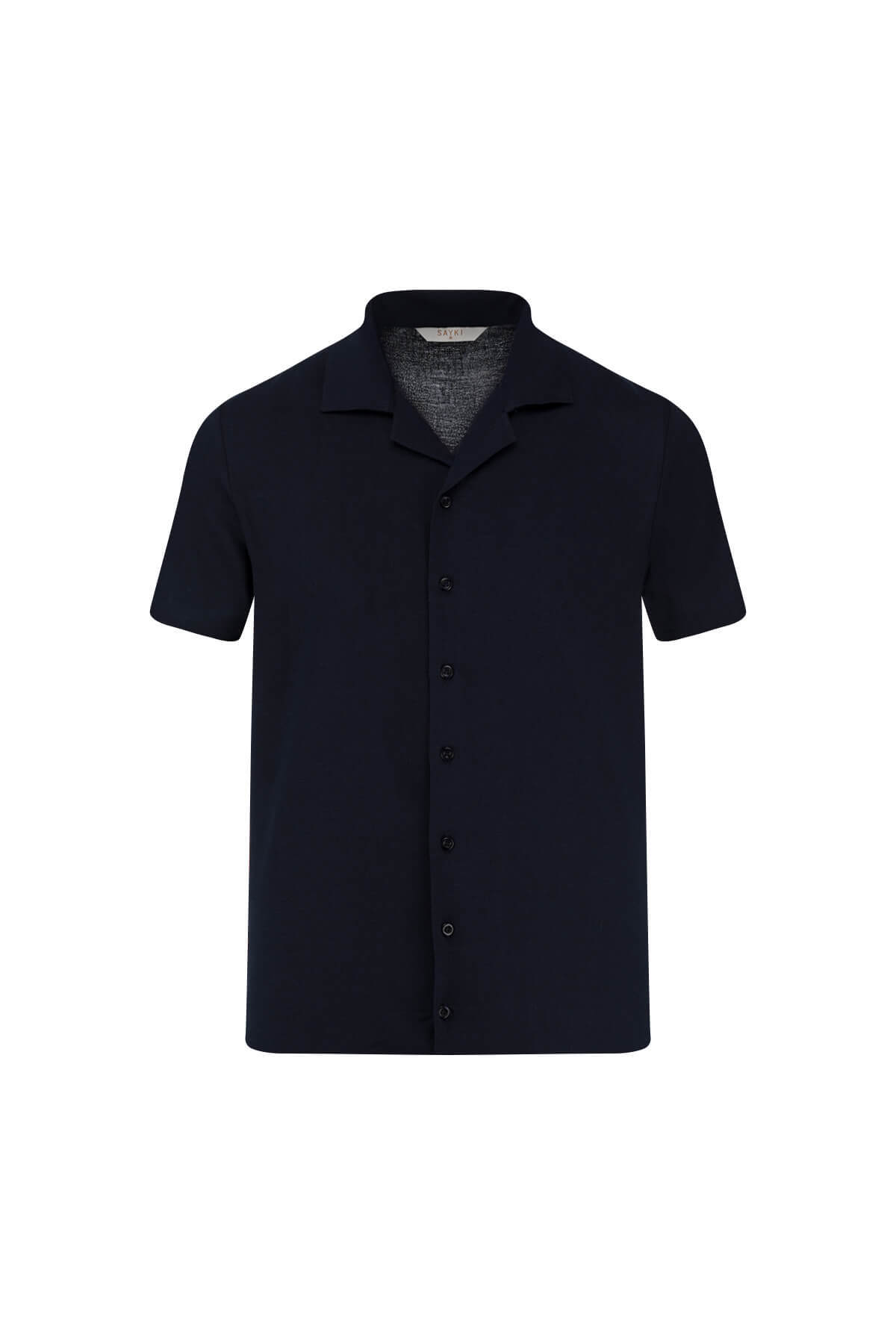 Lacivert Regular Fit Apaş Yaka Keten Gömlek