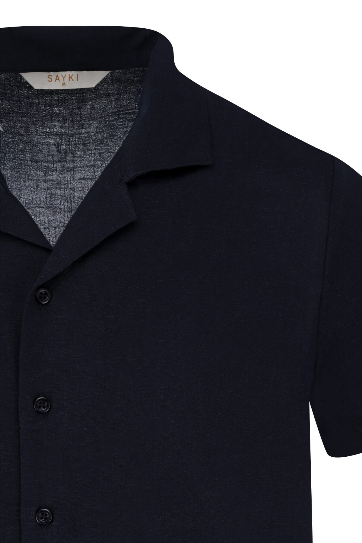 Lacivert Regular Fit Apaş Yaka Keten Gömlek - 3