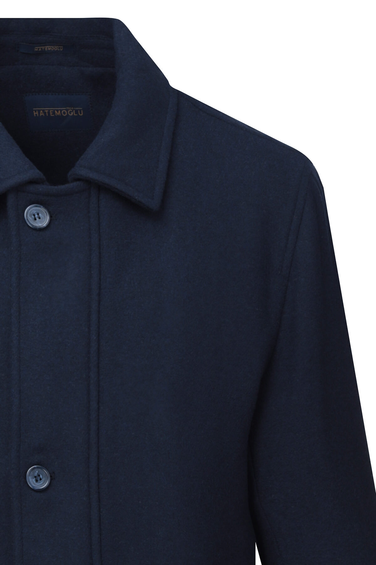 Lacivert Regular Fit Bebe Yaka Yünlü Kaban - 3