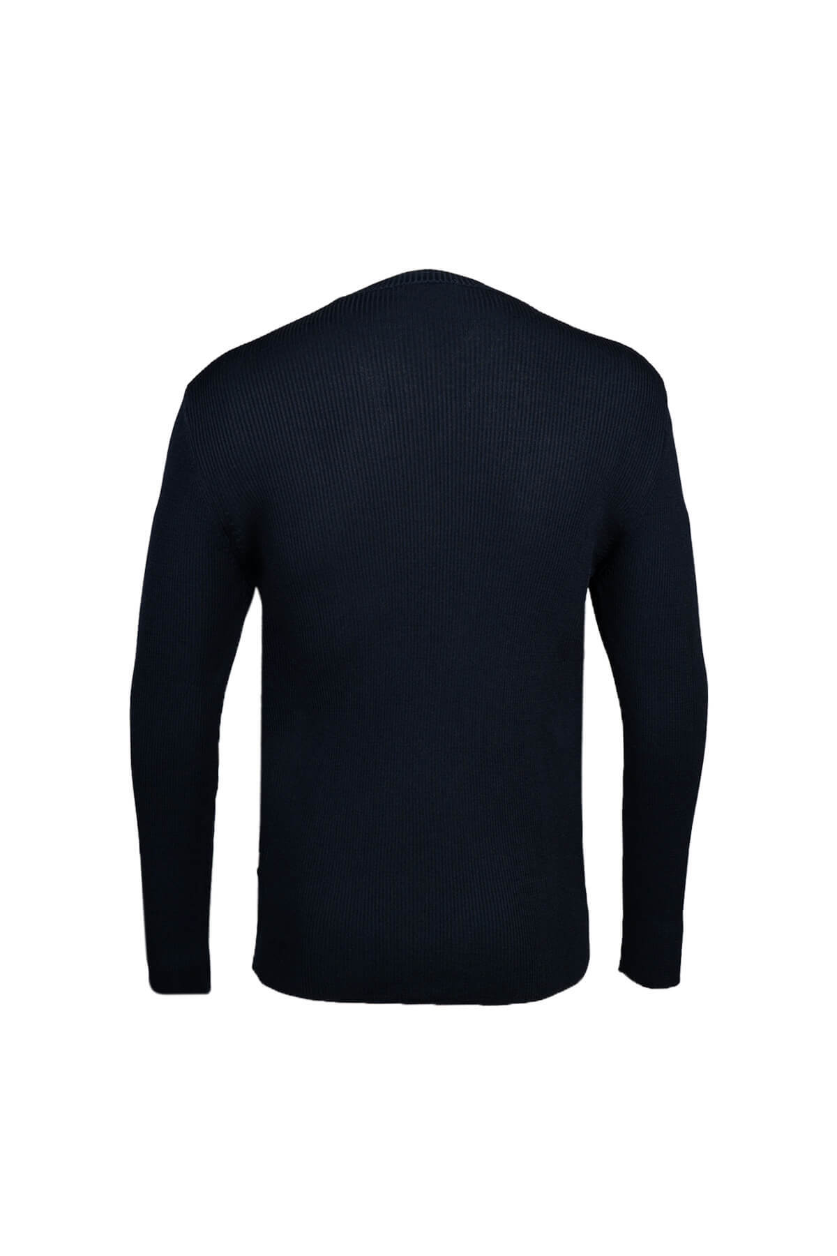 Lacivert Regular Fit Fitilli Bisiklet Yaka Rayon Kazak - 2