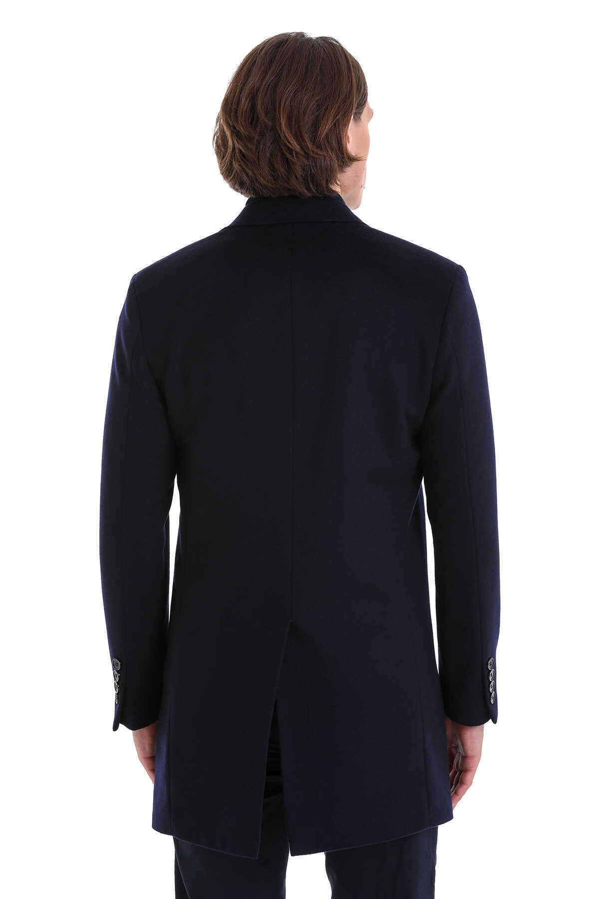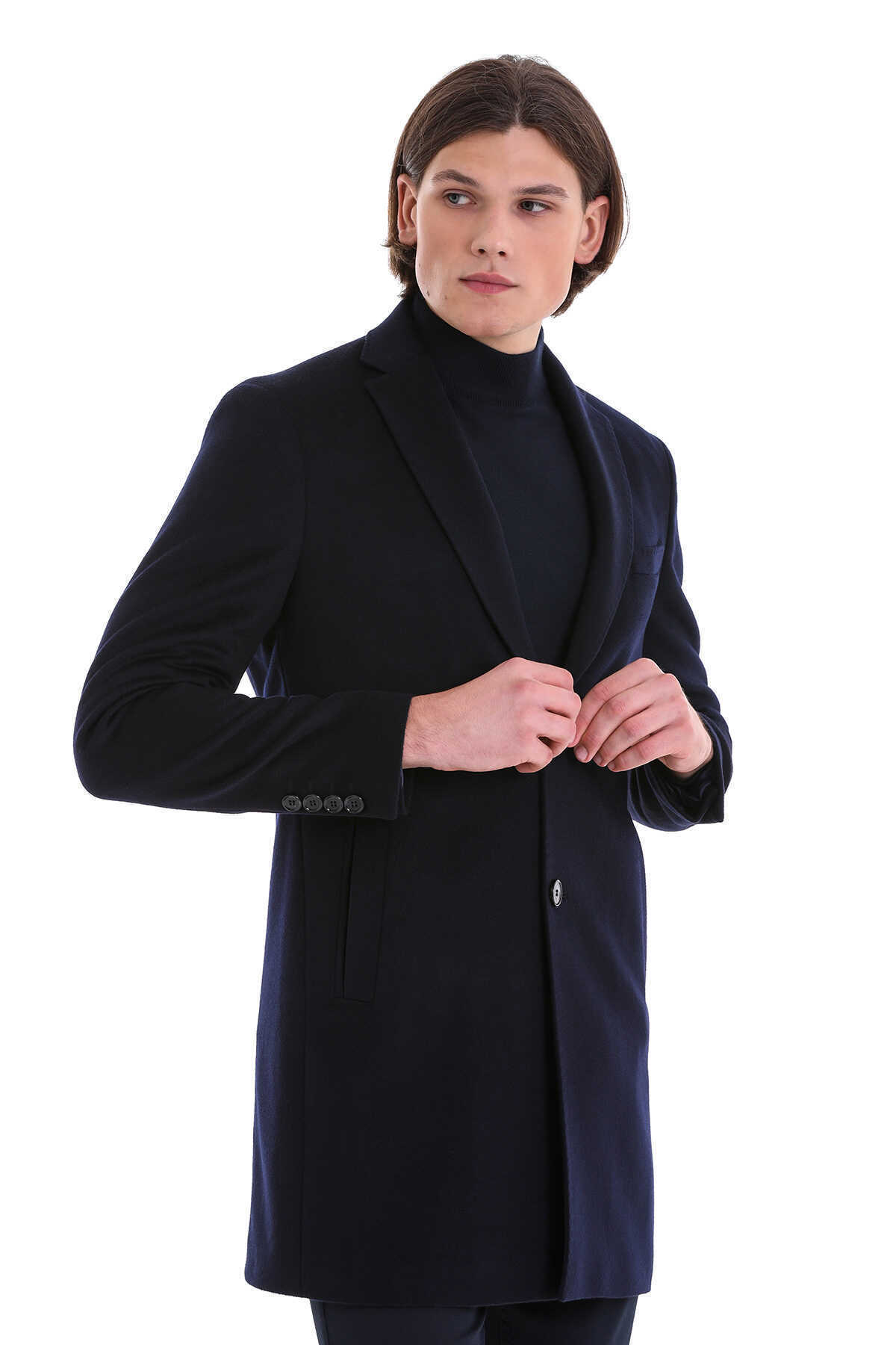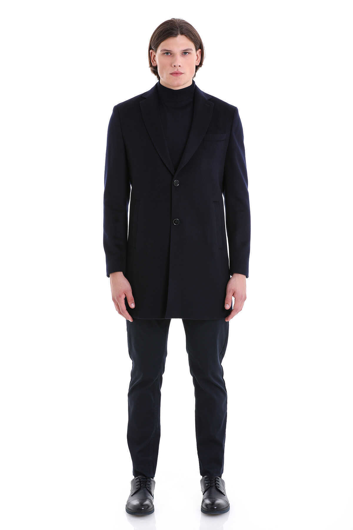 Lacivert Regular Fit Ceket Yaka Yünlü Basic Palto