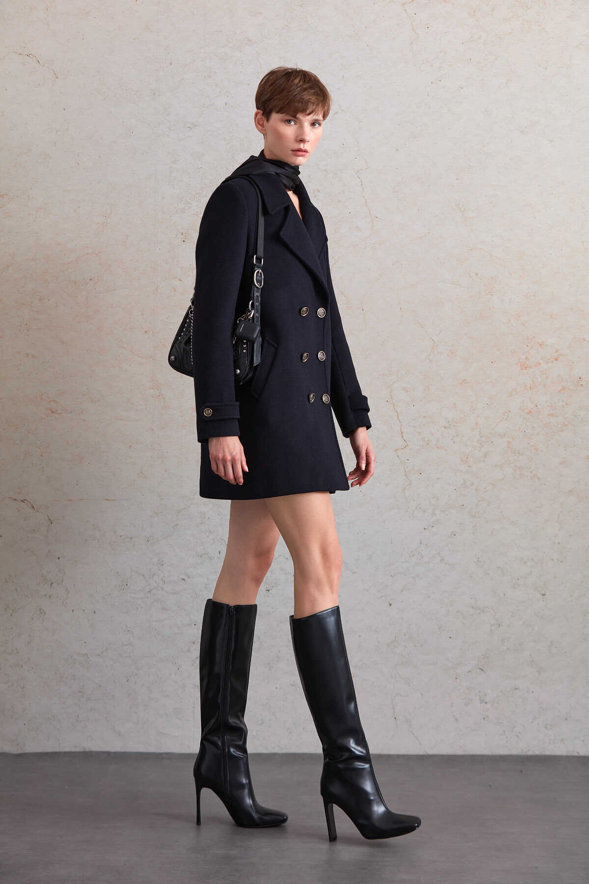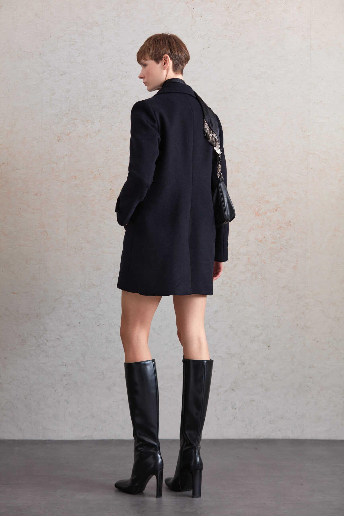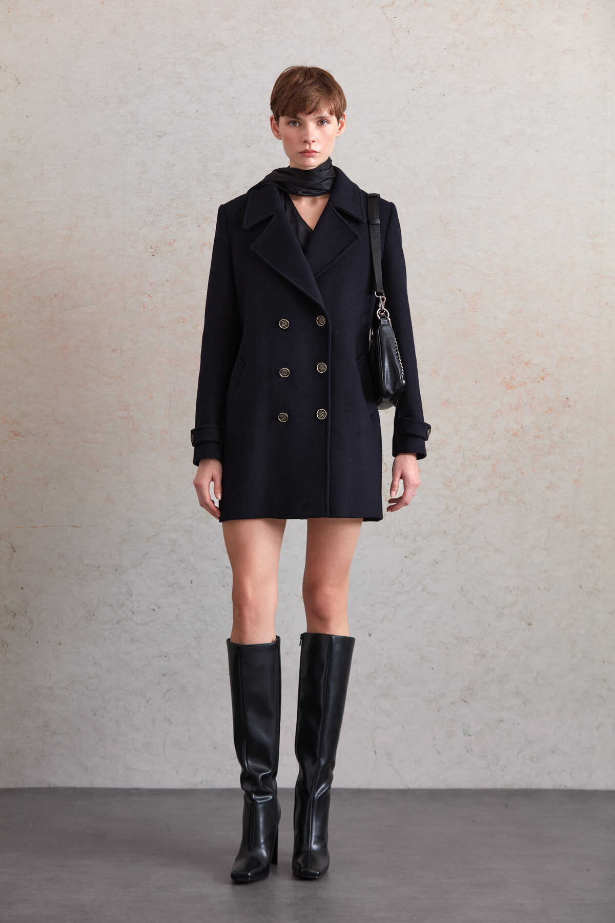 Saykı Woman Lacivert Regular Fit Kruvaze Yün Daisy Kaban