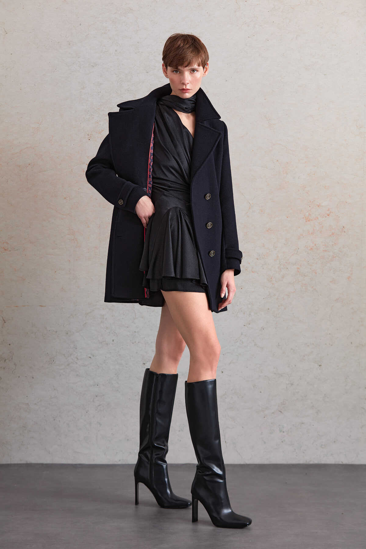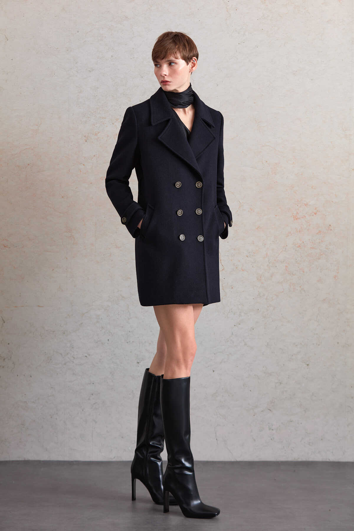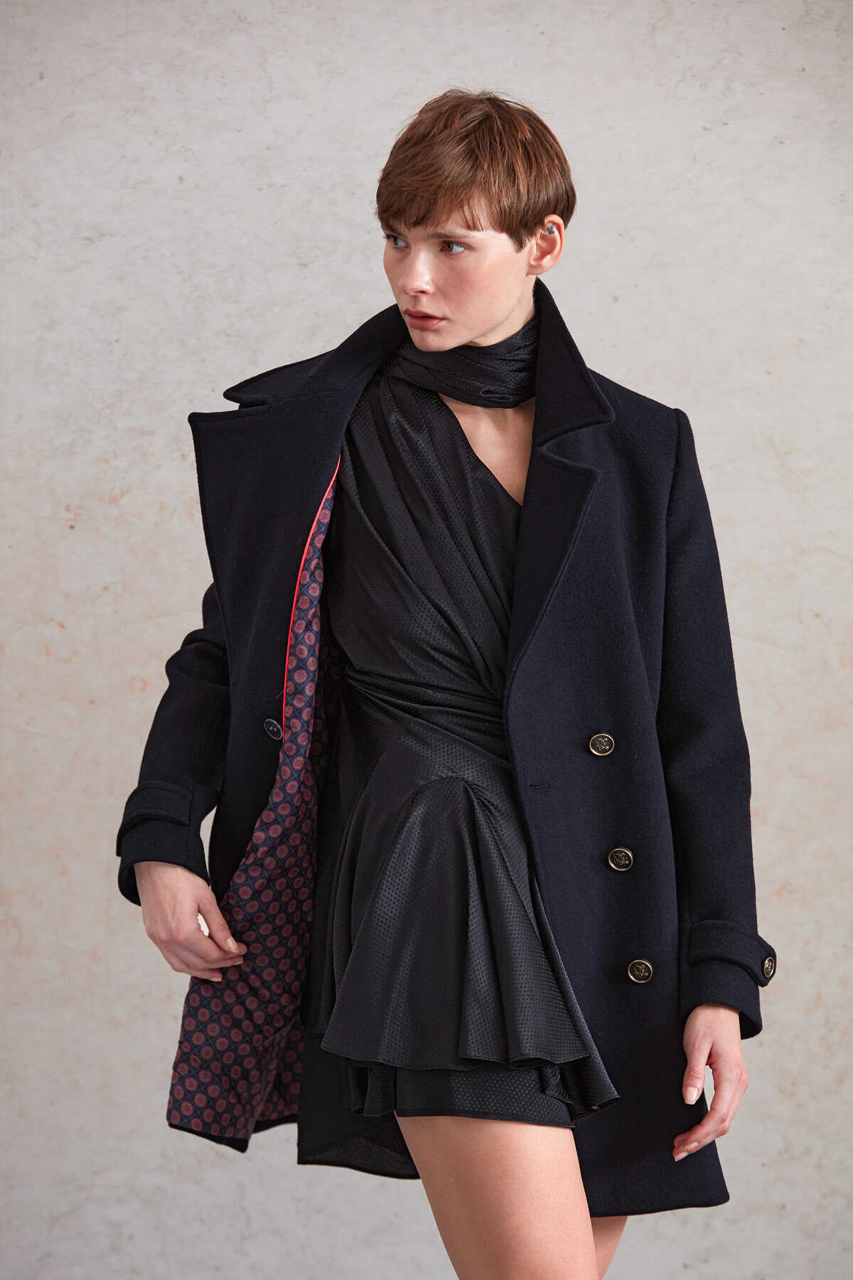 Saykı Woman Lacivert Regular Fit Kruvaze Yün Daisy Kaban
