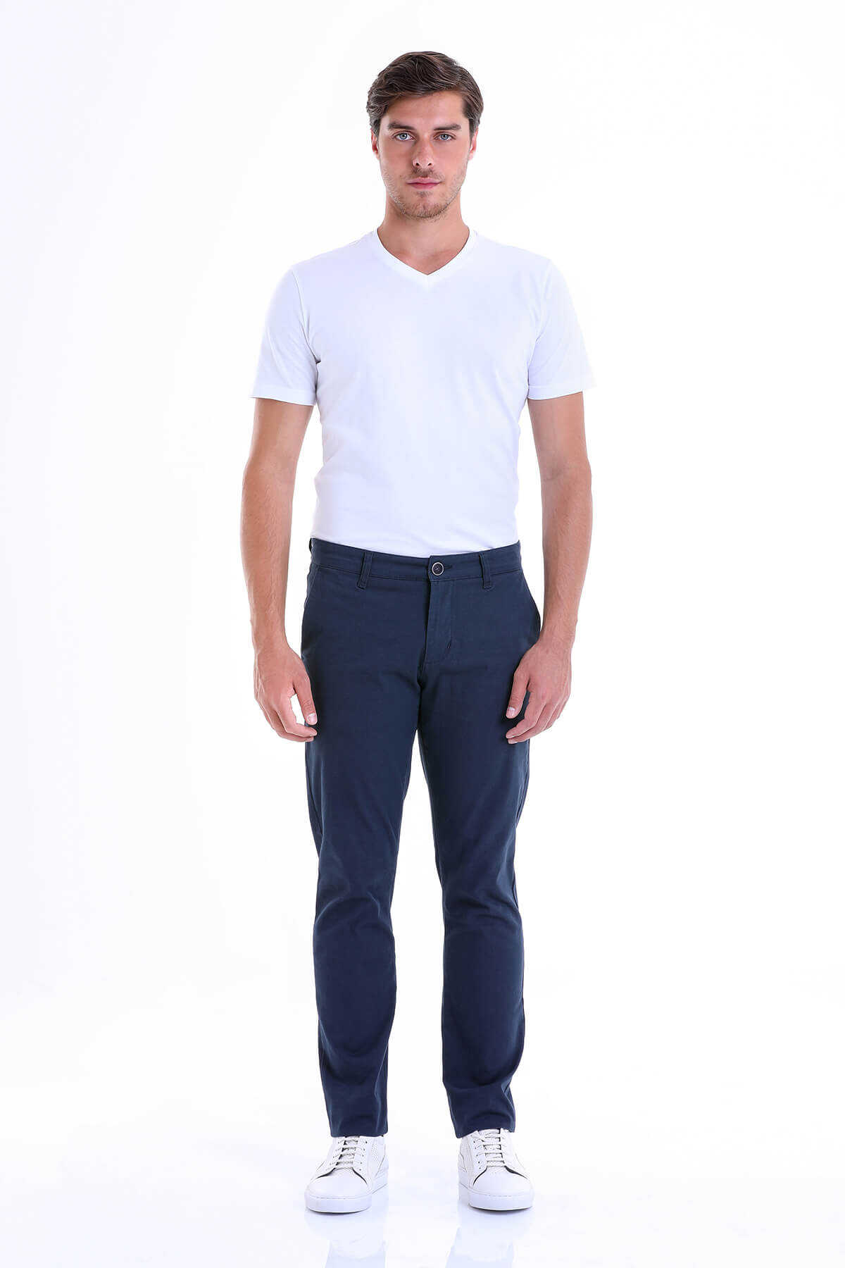 Lacivert Regular Fit Düz Pamuklu Yandan Cep Kanvas Pantolon