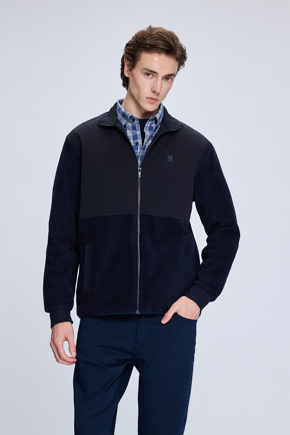 Lacivert Regular Fit Hakim Yaka Baharlık Mont - 4