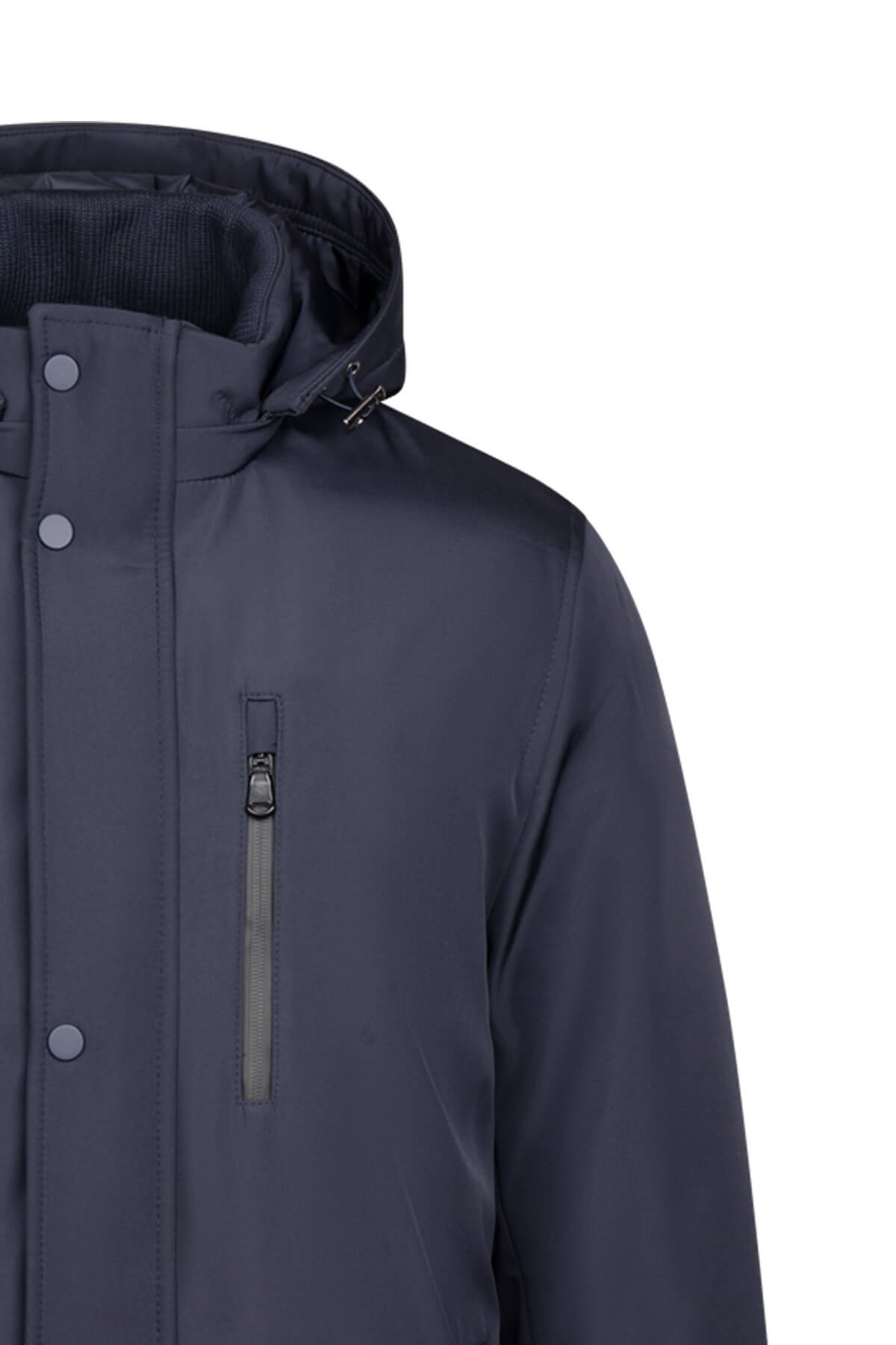 Lacivert Regular Fit Hakim Yaka Kapüşonlu Kaban