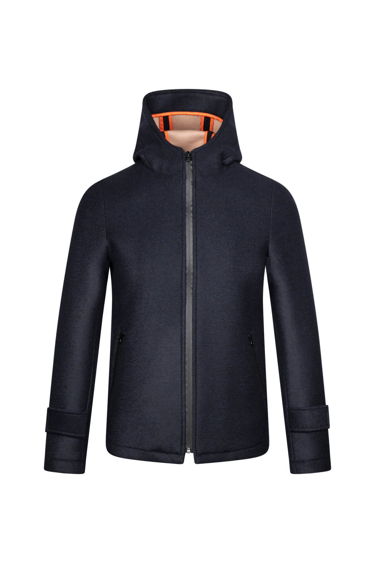 Lacivert Regular Fit Hakim Yaka Kapüşonlu Yünlü Kaşe Mont