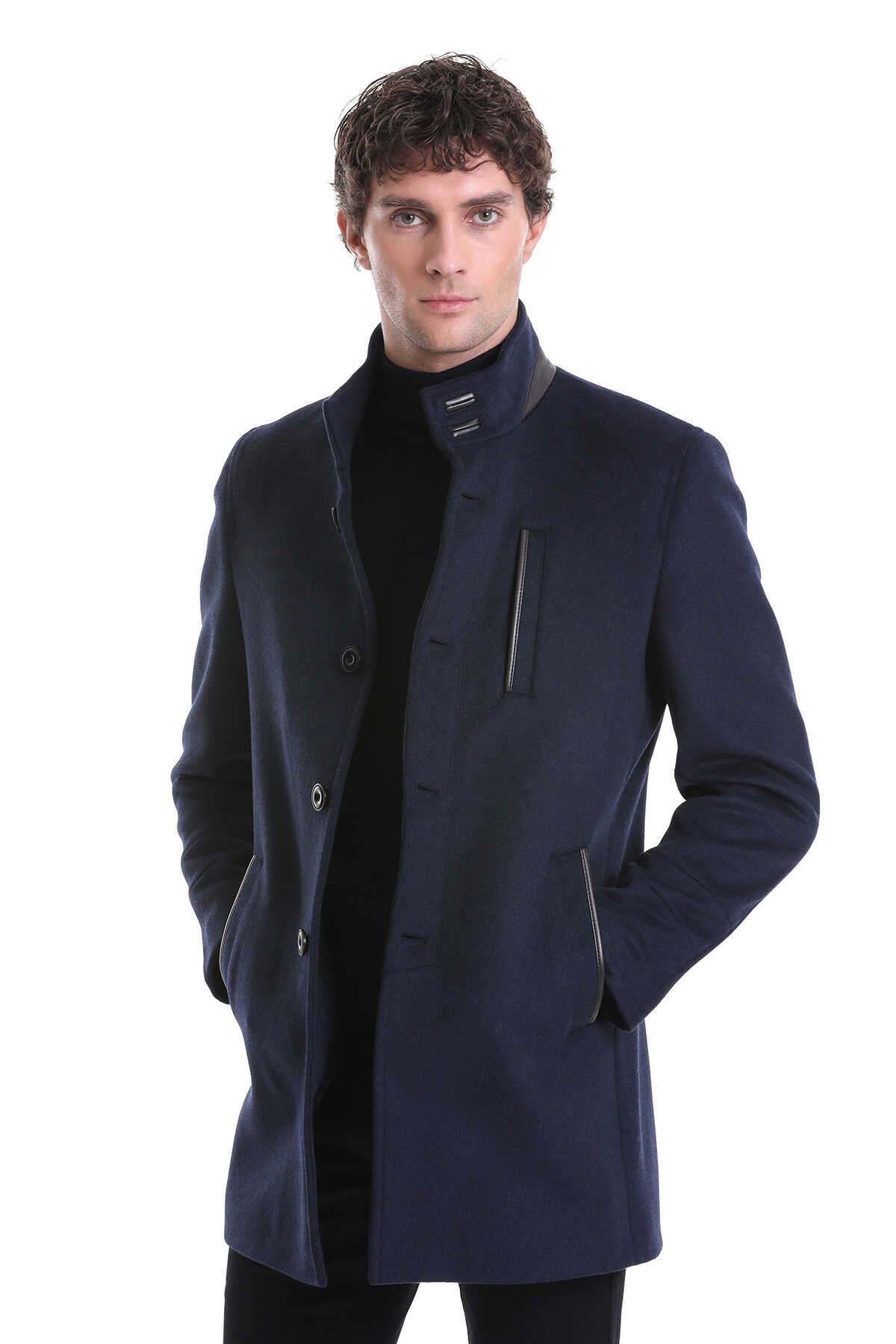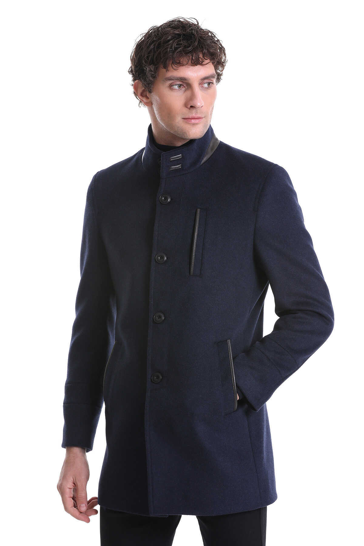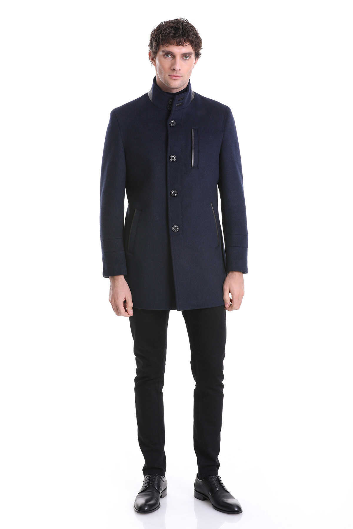 Lacivert Regular Fit Hakim Yaka Yünlü Kaşe Palto