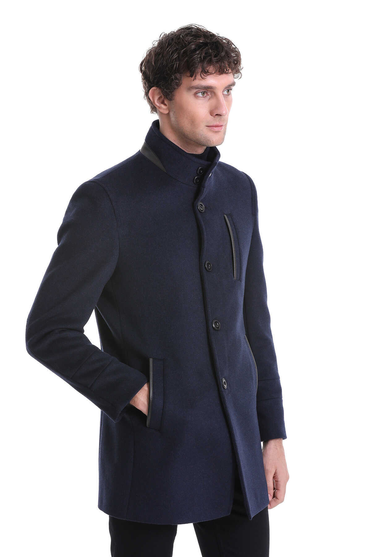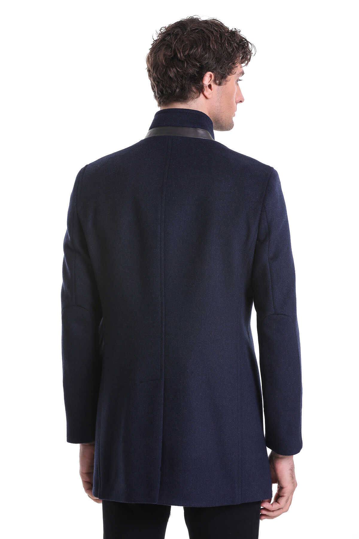 Lacivert Regular Fit Hakim Yaka Yünlü Kaşe Palto - 7