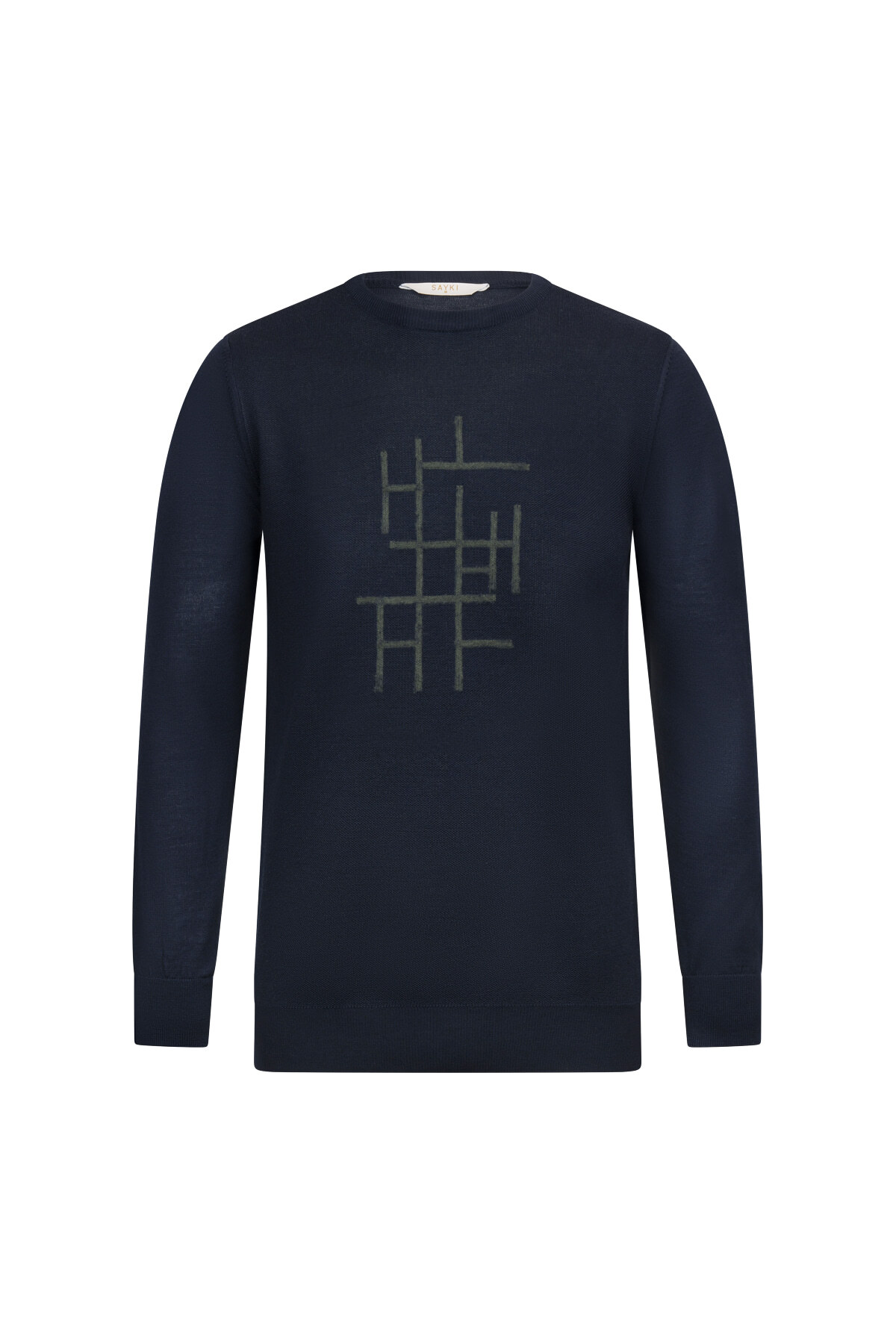 Lacivert Regular Fit Jakarlı Bisiklet Yaka Yünlü Triko Kazak
